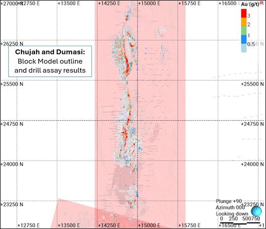 The open pit geological and Mineral Resource domain models used to produce the Open Pit resource statements reported here, are currently those inherited from GSR with only modification to the optimisation parameters used for establishing the reasonable prospects for eventual economic extraction.