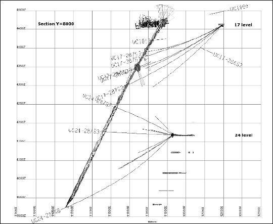 At Prestea underground, the samples used for the current mineral resource estimates at Prestea are based on a combination of surface diamond drilling and underground core drilling from fan drilling carried out in drill cubbies. Drilling for the Main Reef mineralised zone has been carried out at roughly 80 – 100m spacing along strike from surface. The underground drilling has been largely concentrated on the West Reef zone and has consisted of fan drilling. In addition to the drilling, rock saw channels have been cut on a number of levels to provide channel samples across the mineralised zone and to investigate the grade distribution in the immediate contact zones adjacent to the mineralisation.
