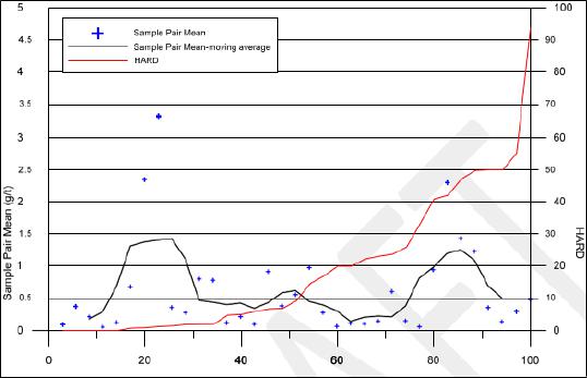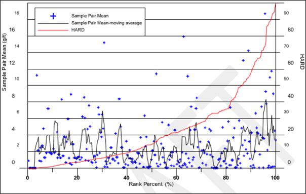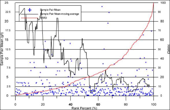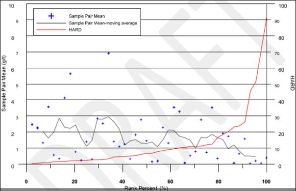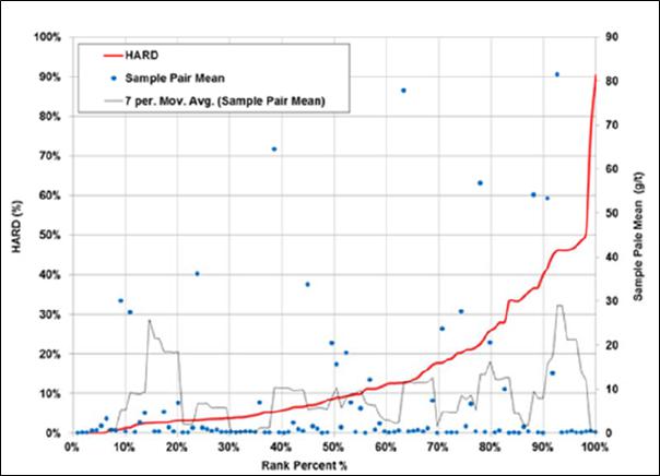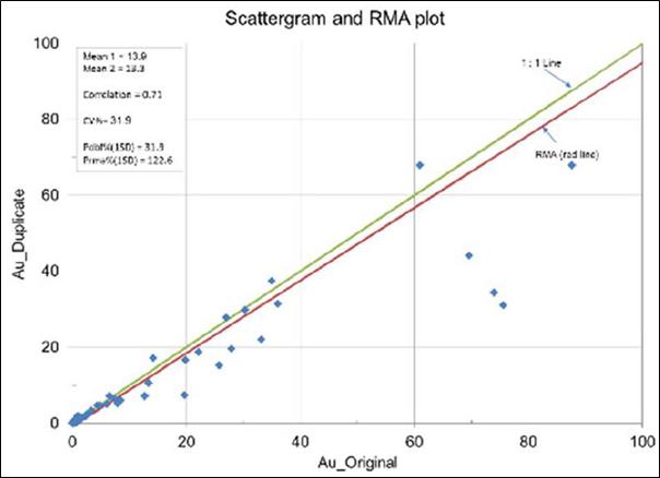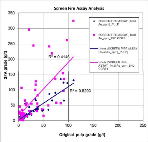 The QA/QC results for the Prestea deposits show a high degree of reproducibility for those samples above the cut-off grade of the deposit. There is a higher degree of variability in the lower grade samples indicative of the high-grade nature of the Prestea WR deposit and the nuggety nature of the mineralization. The Screen Fire Assay work demonstrates that, although coarse gold may be present in the higher-grade areas of the Prestea deposit, it is unlikely to have a significant effect on the overall grade interpolation.