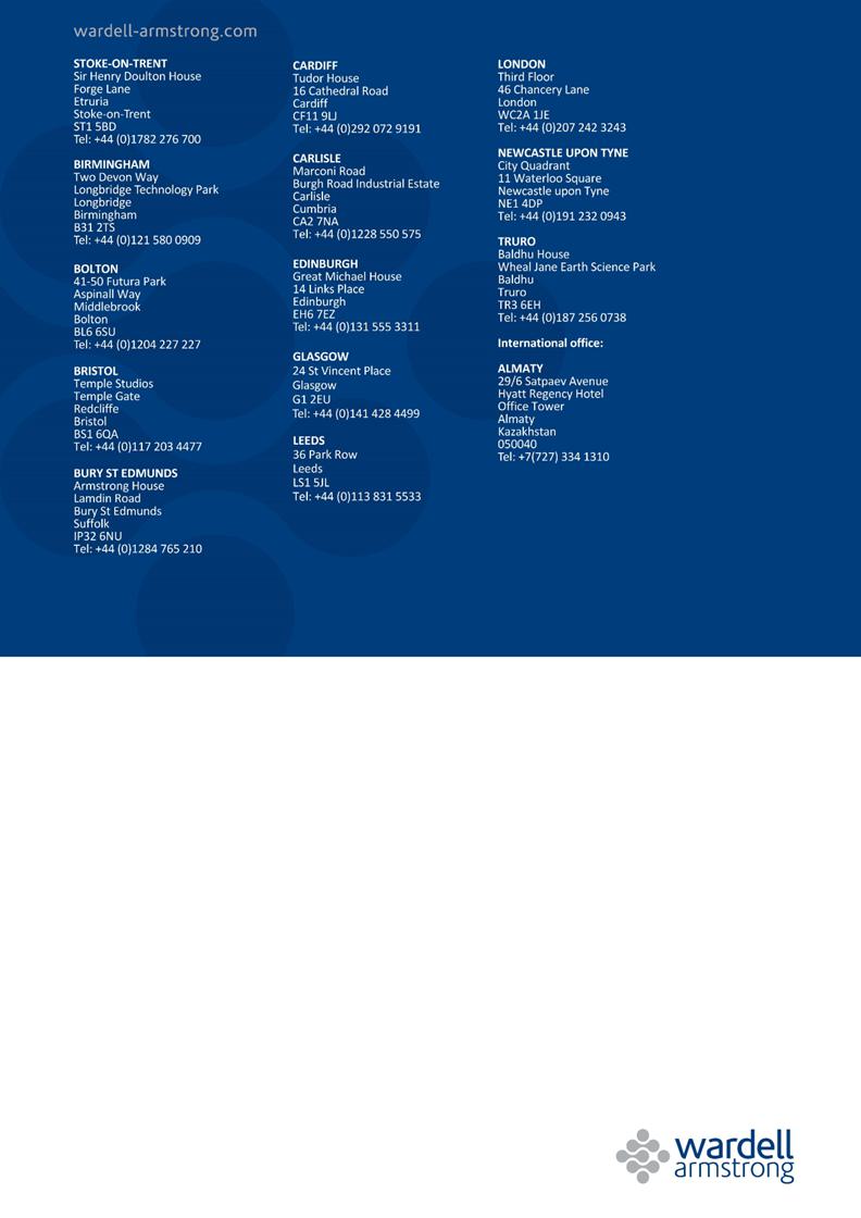 Wardell Armstrong Baldhu House, Wheal Jane Earth Science Park, Baldhu, Truro, Cornwall, TR3 6EH, United Kingdom Telephone: +44 (0)1872 560738 www.wardell-armstrong.com |
