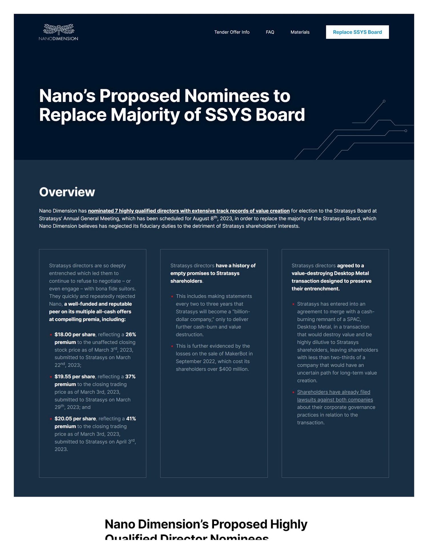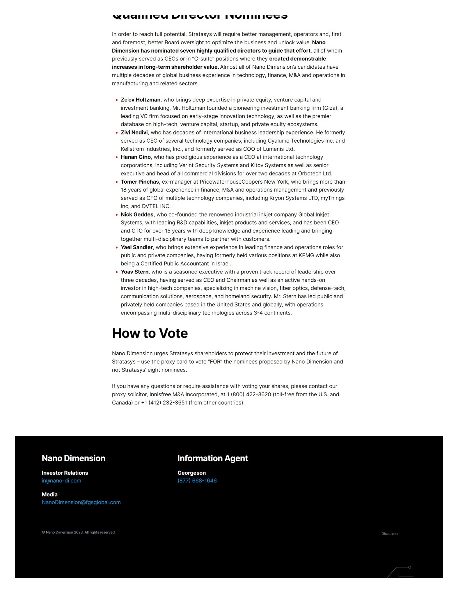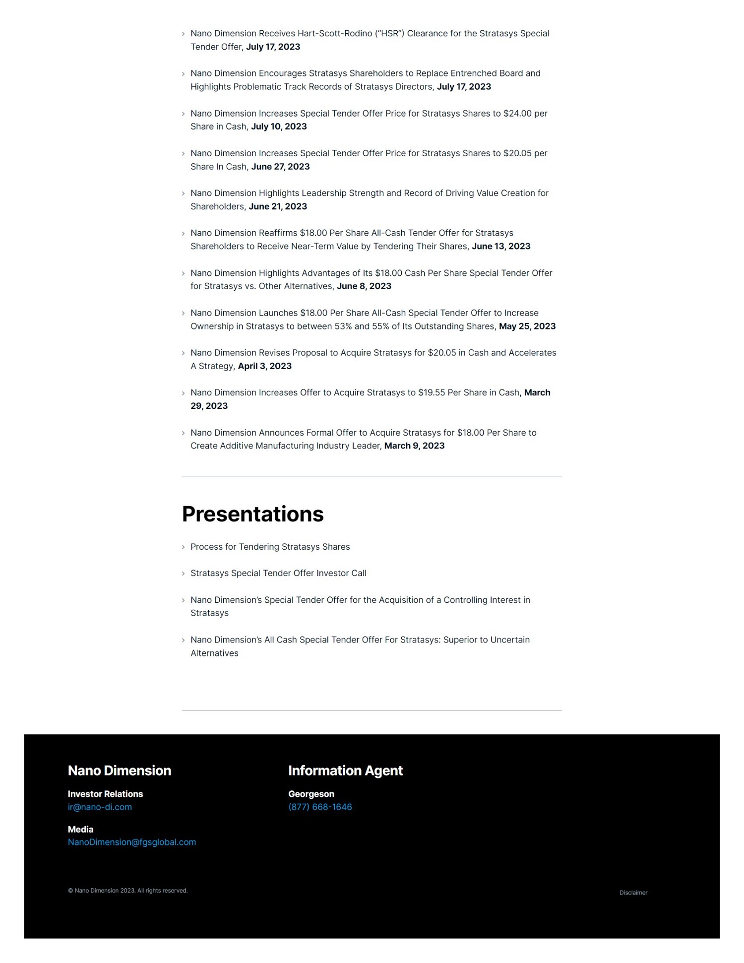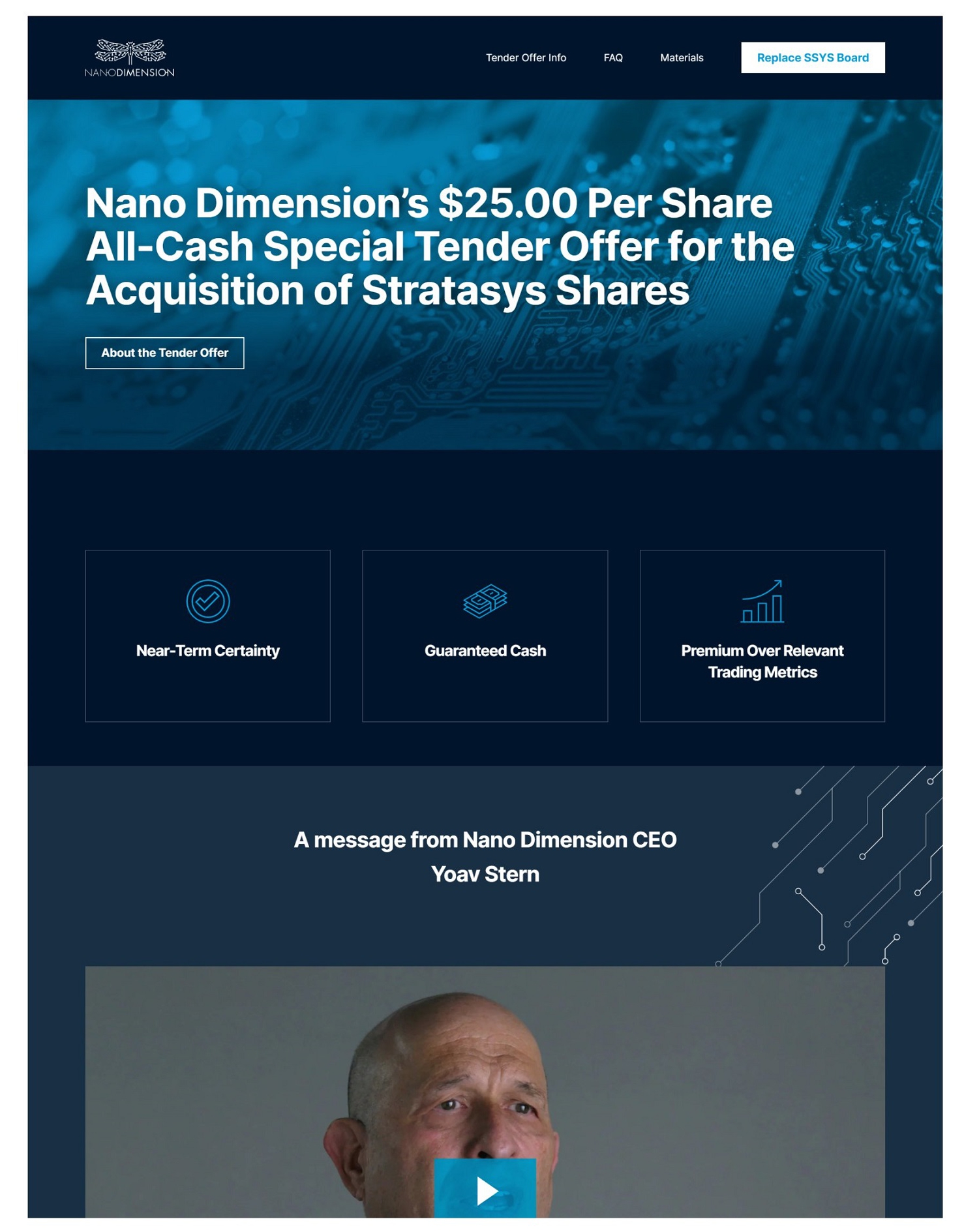 LEARN MORE ABOUT NANO DIMENSION, ITS STRATEGY AND VISION, INCULDING ITS SPECIAL TENDER OFFER FOR STRATASYS AT WWW.STRATASYSVALUENOW.COM