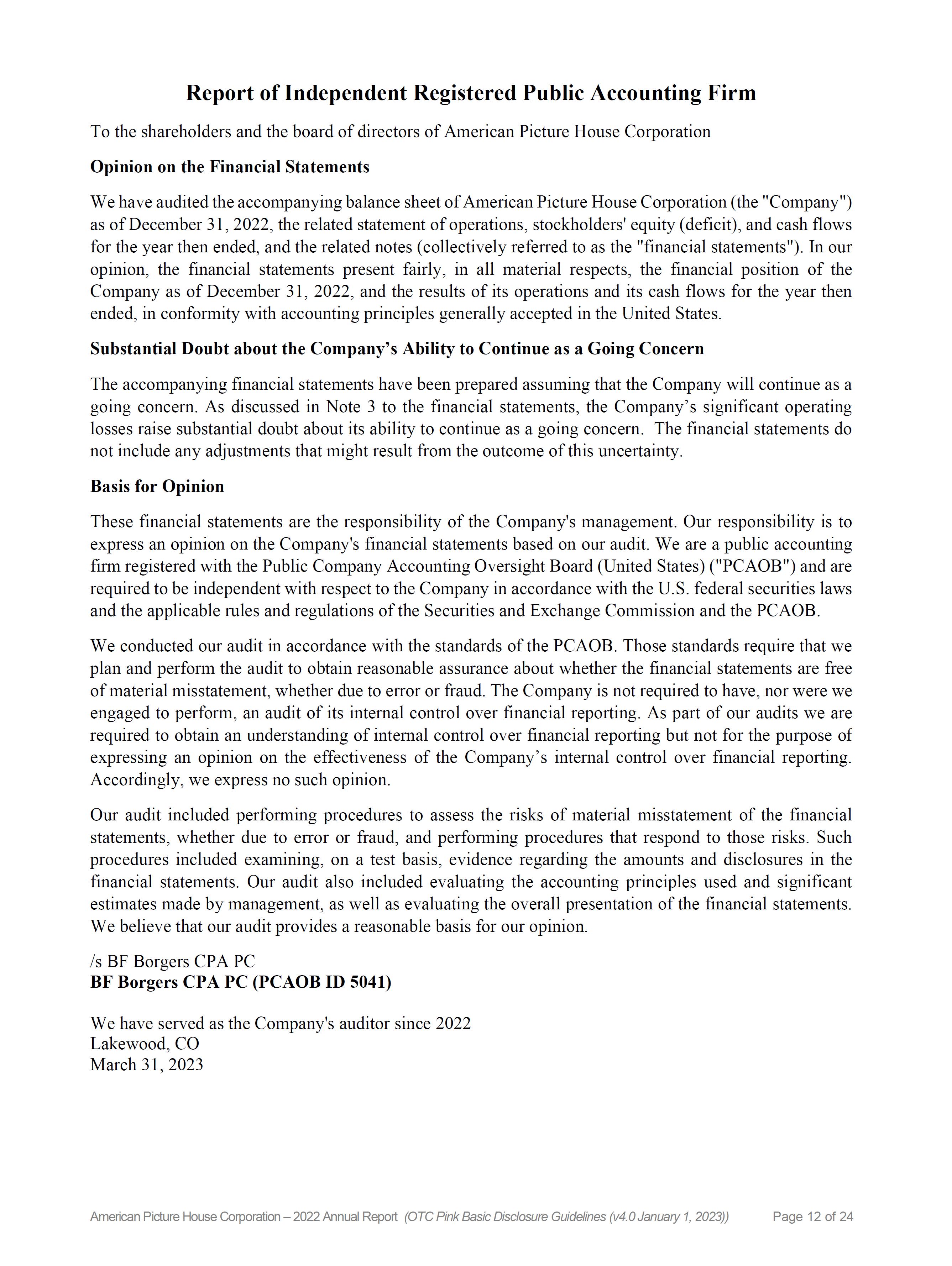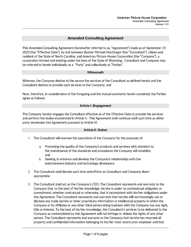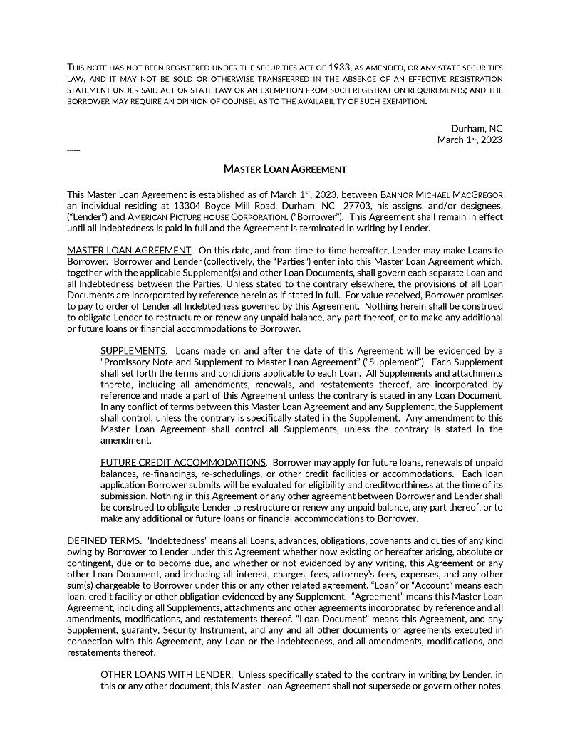 | American Picture House Corporation - SEC Form 10 | 2 | P a g e |
