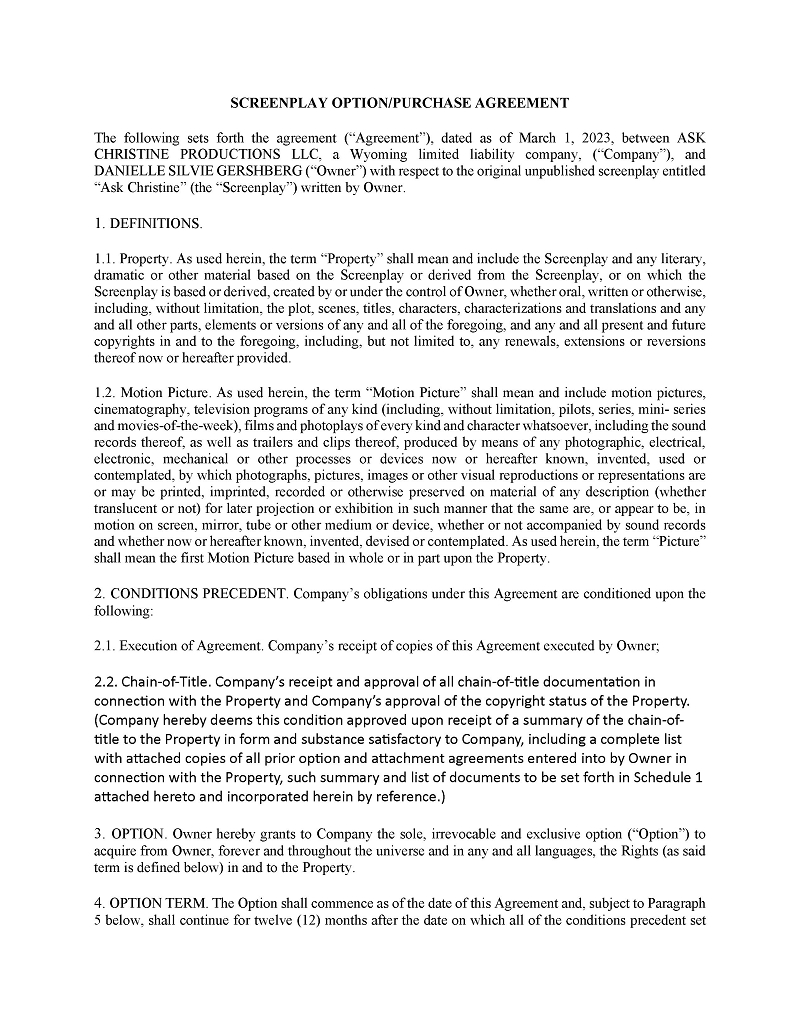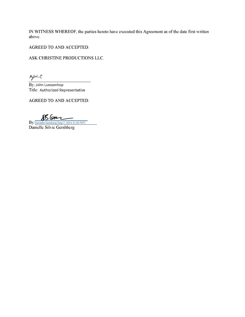 | ● | MIDNIGHT’S DOOR, a screenplay written by Kirsten Elms. These option rights expire in February 2024 with the ability to extend the option for an additional two (2) years. |