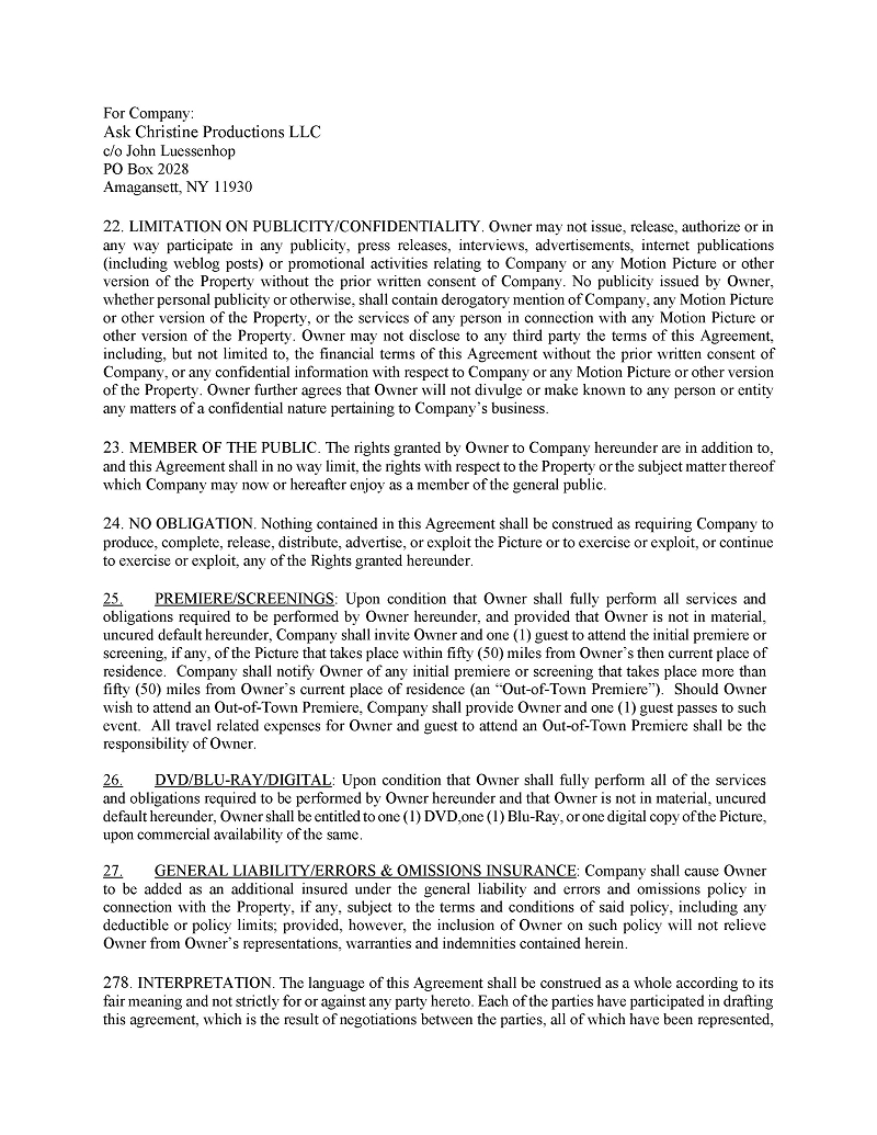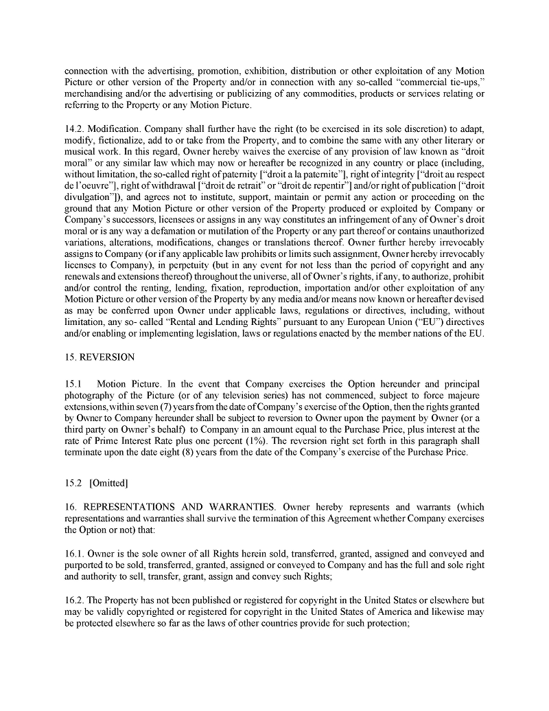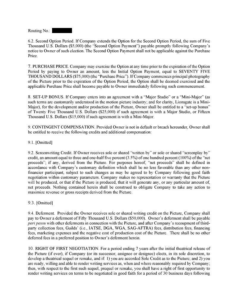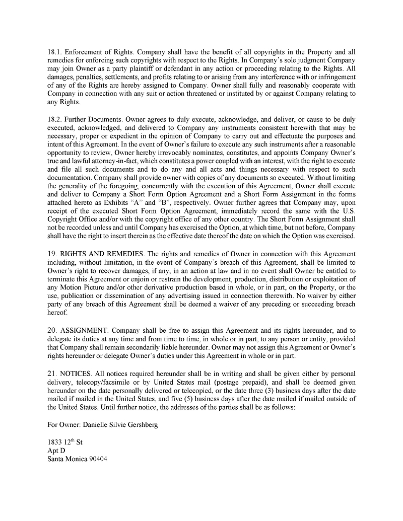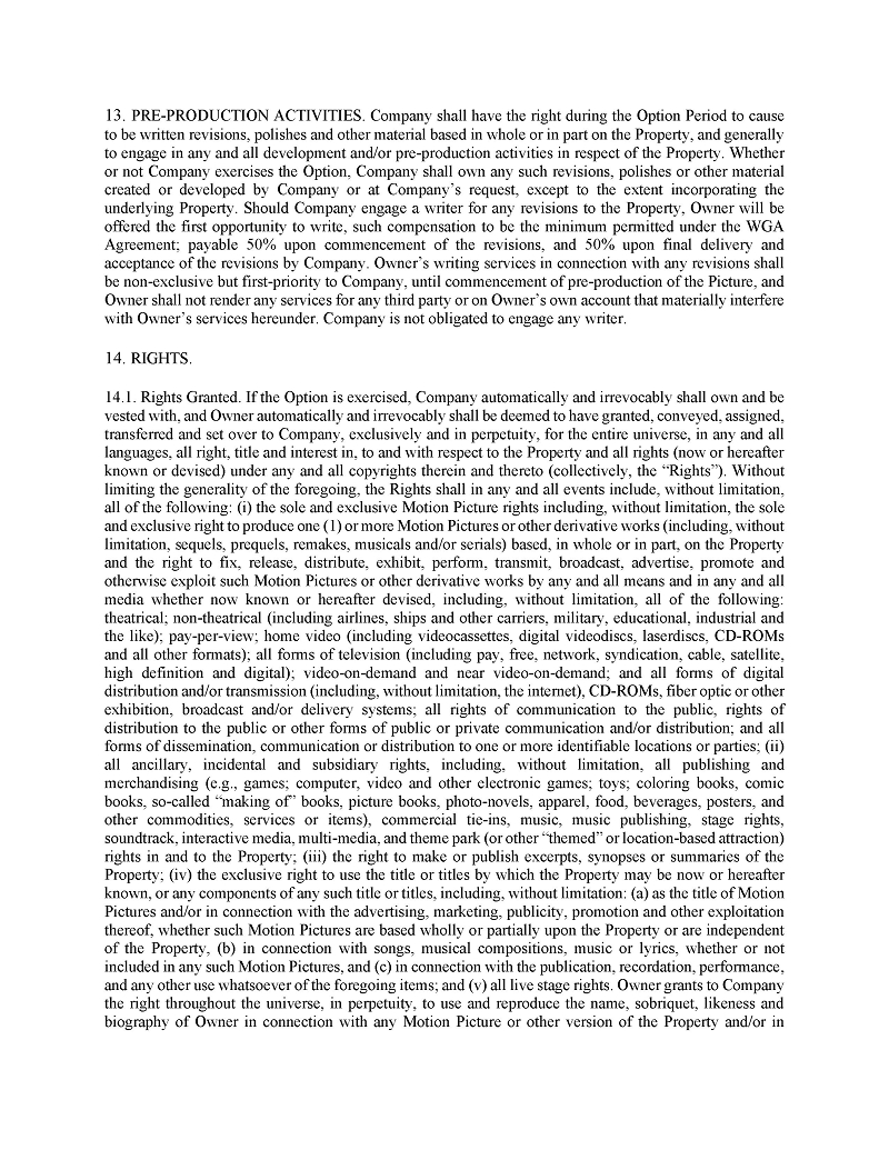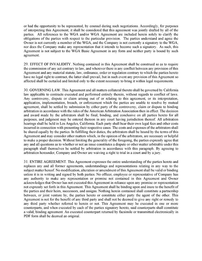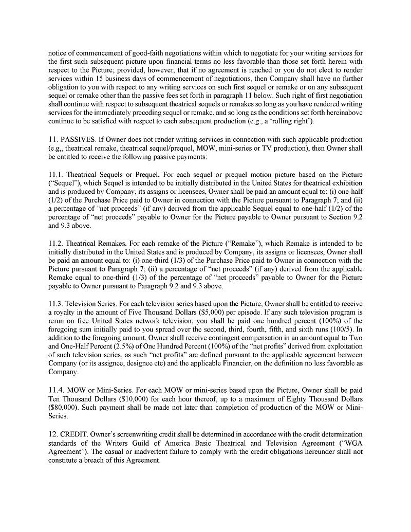 | ● | Hiring other qualified Writers Guild of America (“WGA”) writers to further develop, polish, or re-write entertainment properties; |