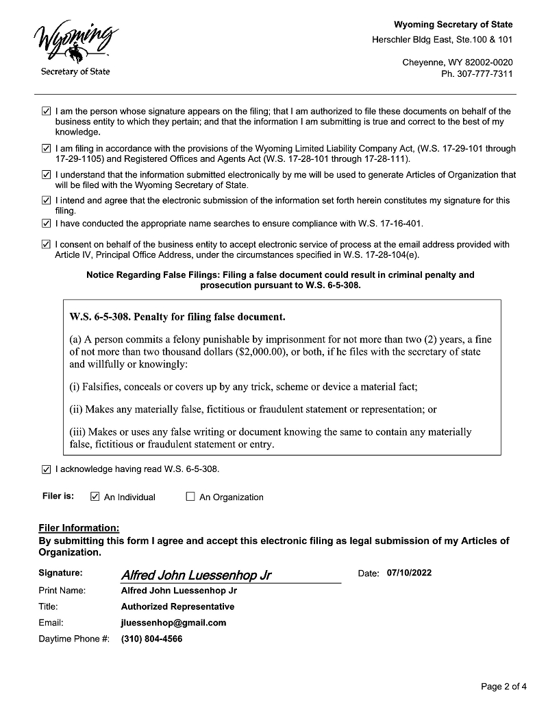 | Wyoming | 85-4154740 | |