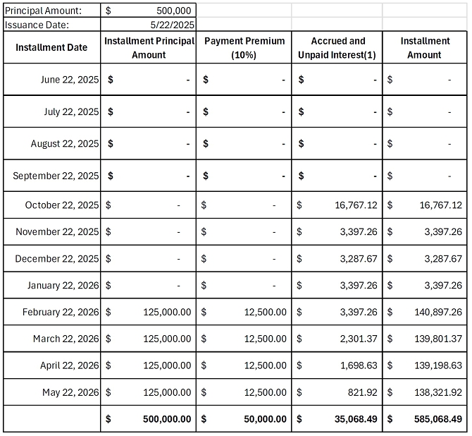 | ● | On November 1, 2024, the Company entered into an agreement with Sportech, which was subsequently amended on June 12, 2025, pursuant to which Sportech has agreed to provide up to $10 million to fund the business and operations of the Company in 2025, 2026, and 2027. | |