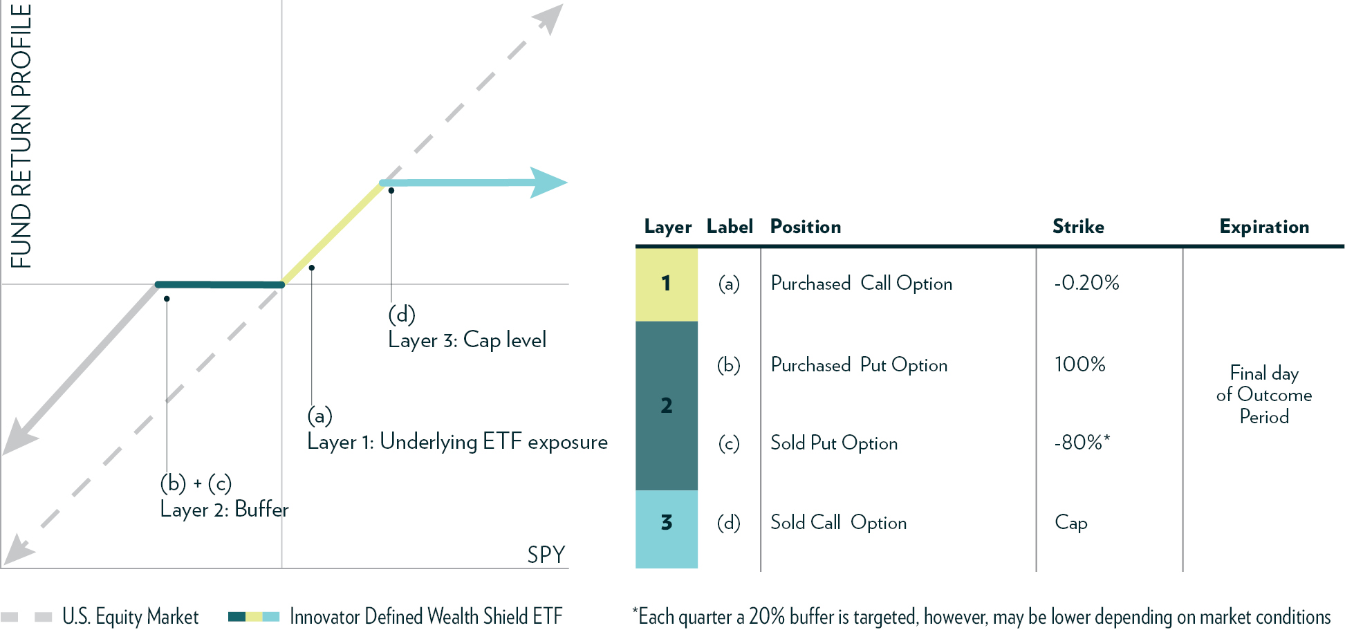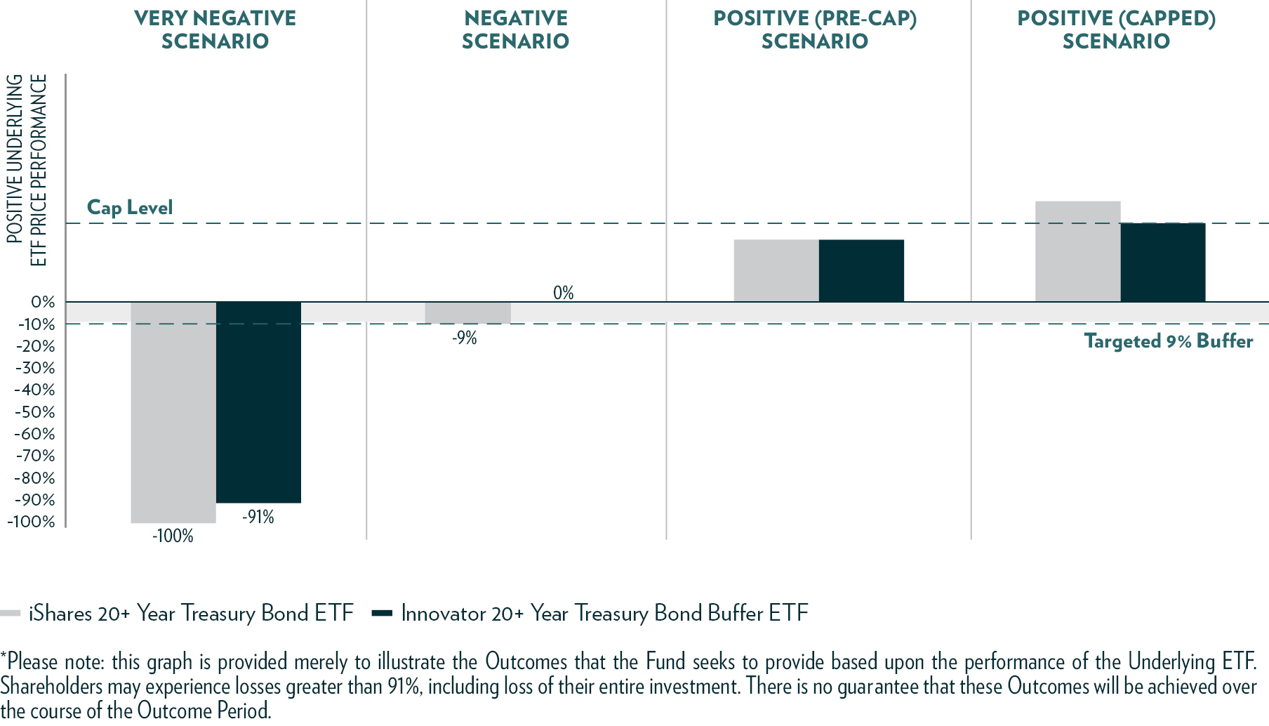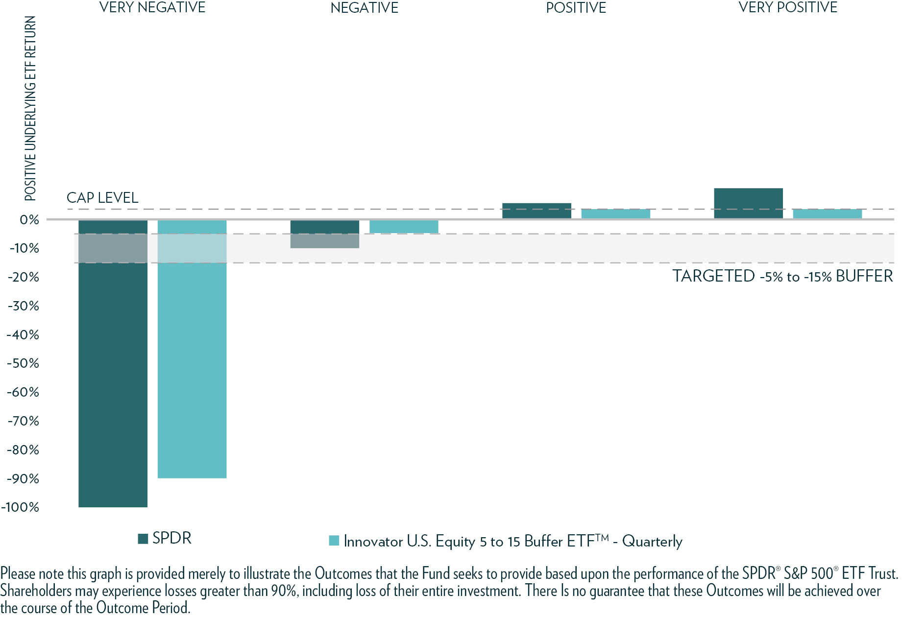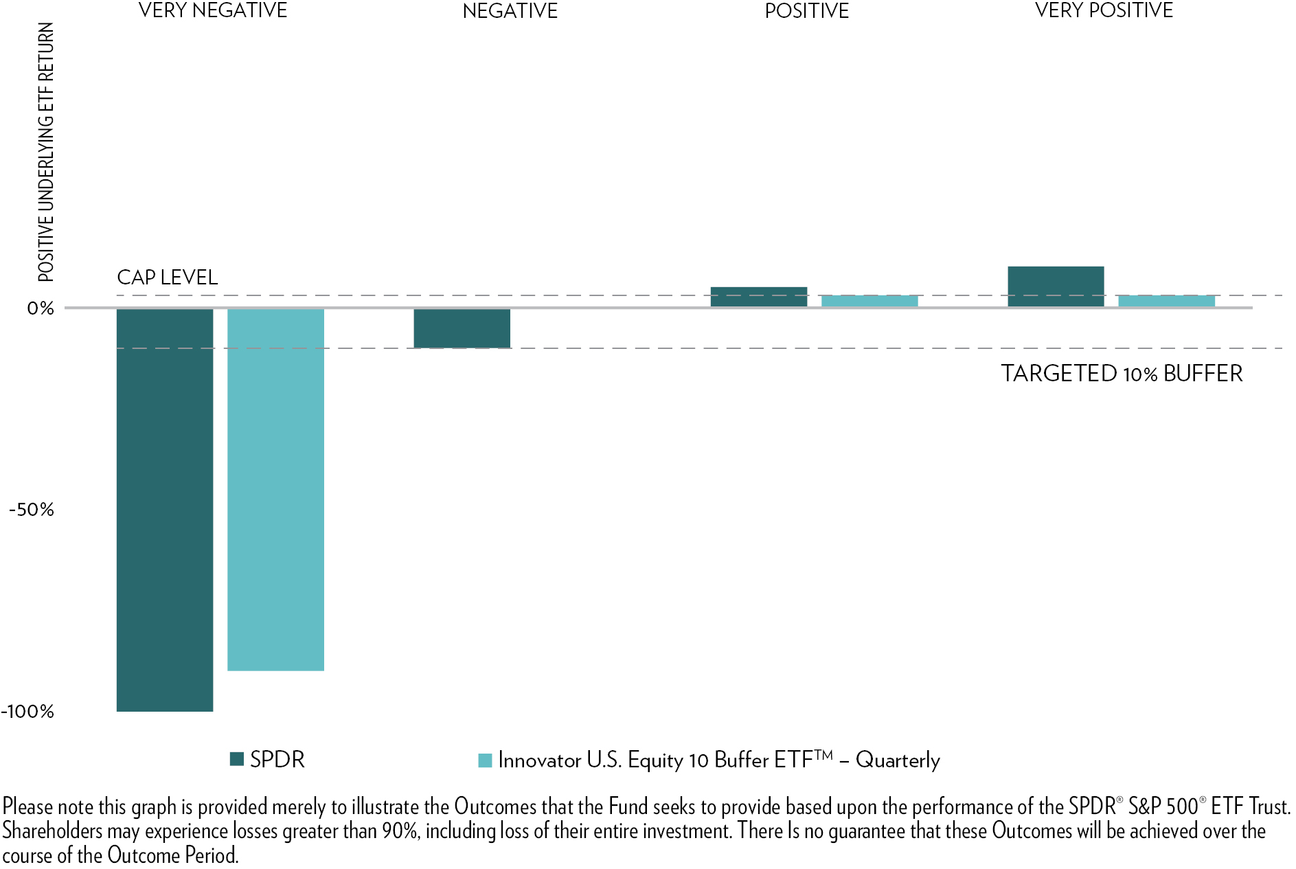 • The Fund seeks to provide shareholders that hold Fund Shares for the entire Outcome Period with a buffer (the “Buffer”) against the first 9% of Underlying ETF losses during the Outcome Period. The Fund’s shareholders will bear all Underlying ETF losses exceeding 9% on a one-to-one basis. The Buffer is provided prior to taking into account annual Fund management fees, shareholder transaction fees and any extraordinary expenses incurred by the Fund. These fees and any expenses will have the effect of reducing the Buffer amount for Fund shareholders for an Outcome Period. When the Fund’s annual management fee equal to 0.79% of the Fund’s daily net assets is taken into account for the Outcome Period, the net Buffer for an Outcome Period is 8.21%. The Buffer will be further reduced by any shareholder transaction fees and any extraordinary expenses incurred by the Fund. If the Outcome Period has begun and the Fund has decreased in value beyond the pre-determined 9%Buffer, an investor purchasing Fund Shares at that price may not benefit from the Buffer. Similarly, if the Outcome Period has begun and the Fund has increased in value, an investor purchasing Fund Shares at that price may not benefit from the Buffer until the Fund’s value has decreased to its value at the commencement of the Outcome Period. An investment in Fund Shares is only appropriate for shareholders willing to bear those losses.