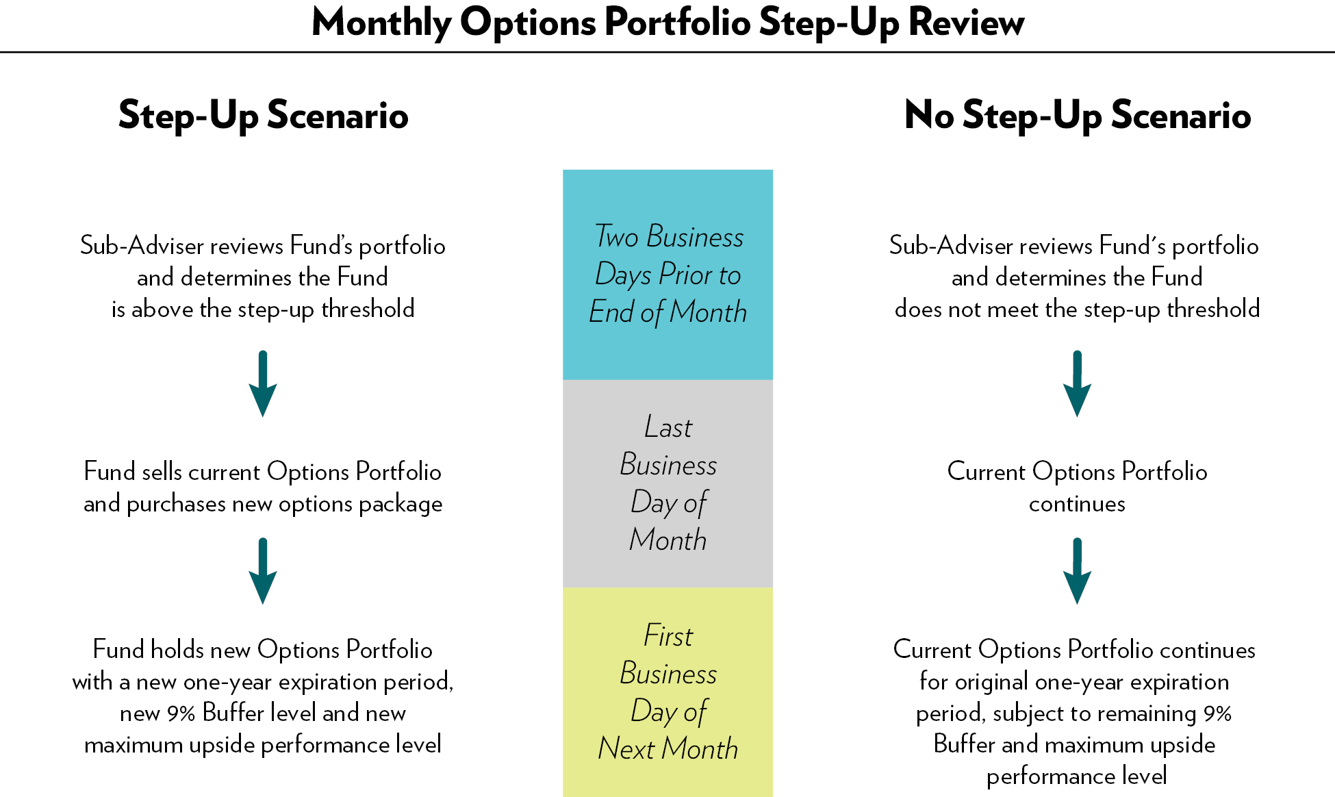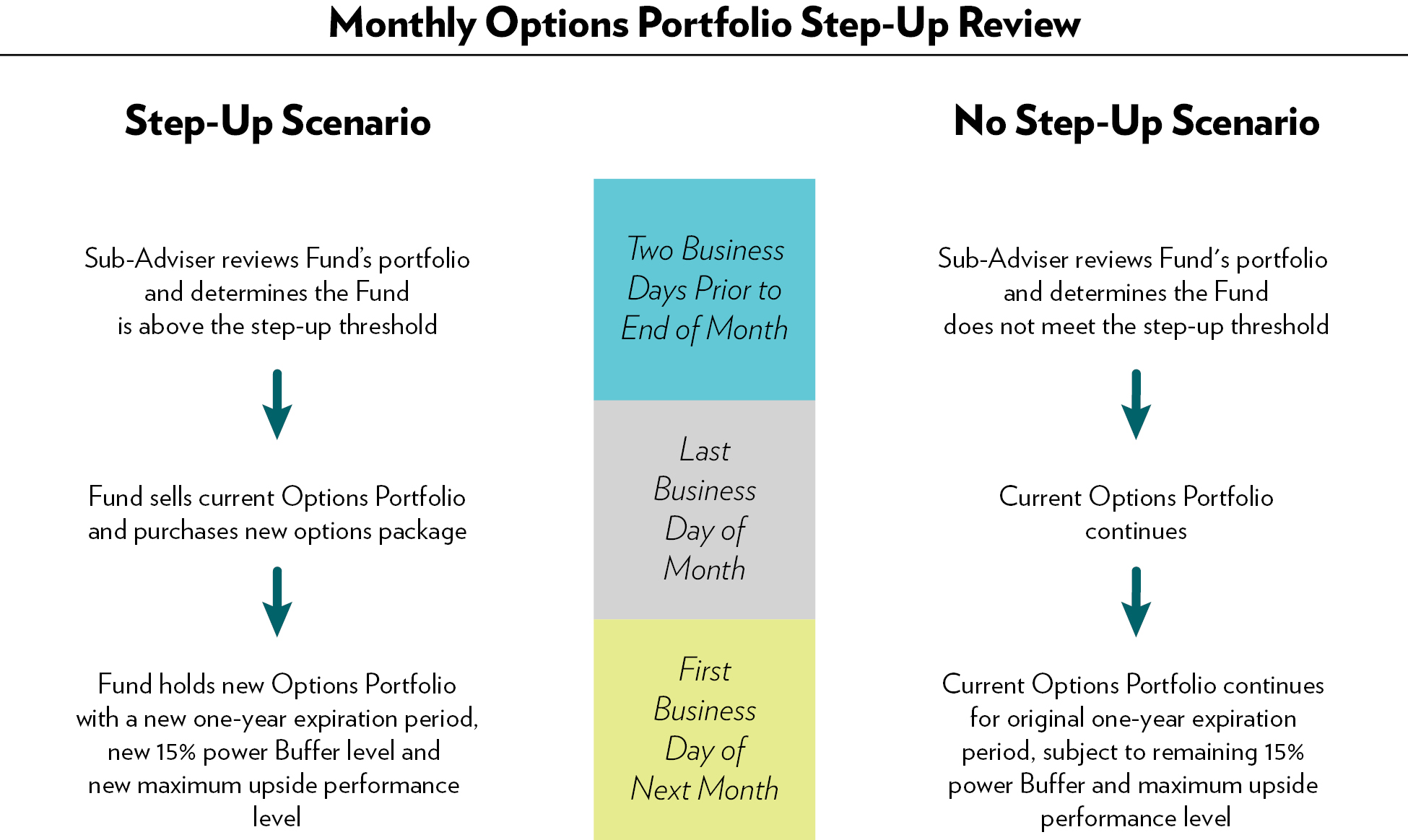 As is discussed in further detail below, it is anticipated that during the Outcome Period the Fund’s NAV will not increase or decrease at the same rate as the Underlying ETF’s share price. The Fund’s NAV is based upon the value of its portfolio, which is primarily composed of FLEX Options. Although the value of the Underlying ETF’s share price is a significant component of the value of the Fund’s FLEX Options, the time remaining until those FLEX Options expire also affects their value. The Fund’s investment sub-adviser, Milliman Financial Risk Management LLC (“Milliman” or the “Sub-Adviser”), generally anticipates that the Fund’s NAV will increase on days when the Underlying ETF’s share price increases and will decrease on days when the Underlying ETF’s share price decreases, but that the rate of such increase or decrease will be less than that experienced by the Underlying ETF.