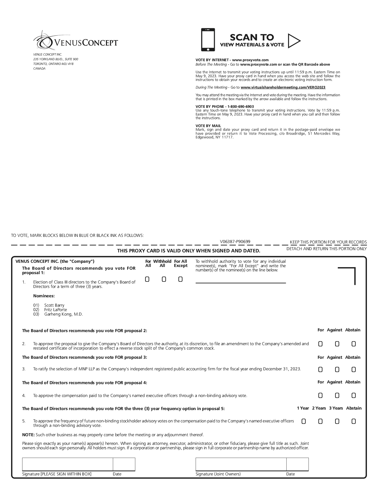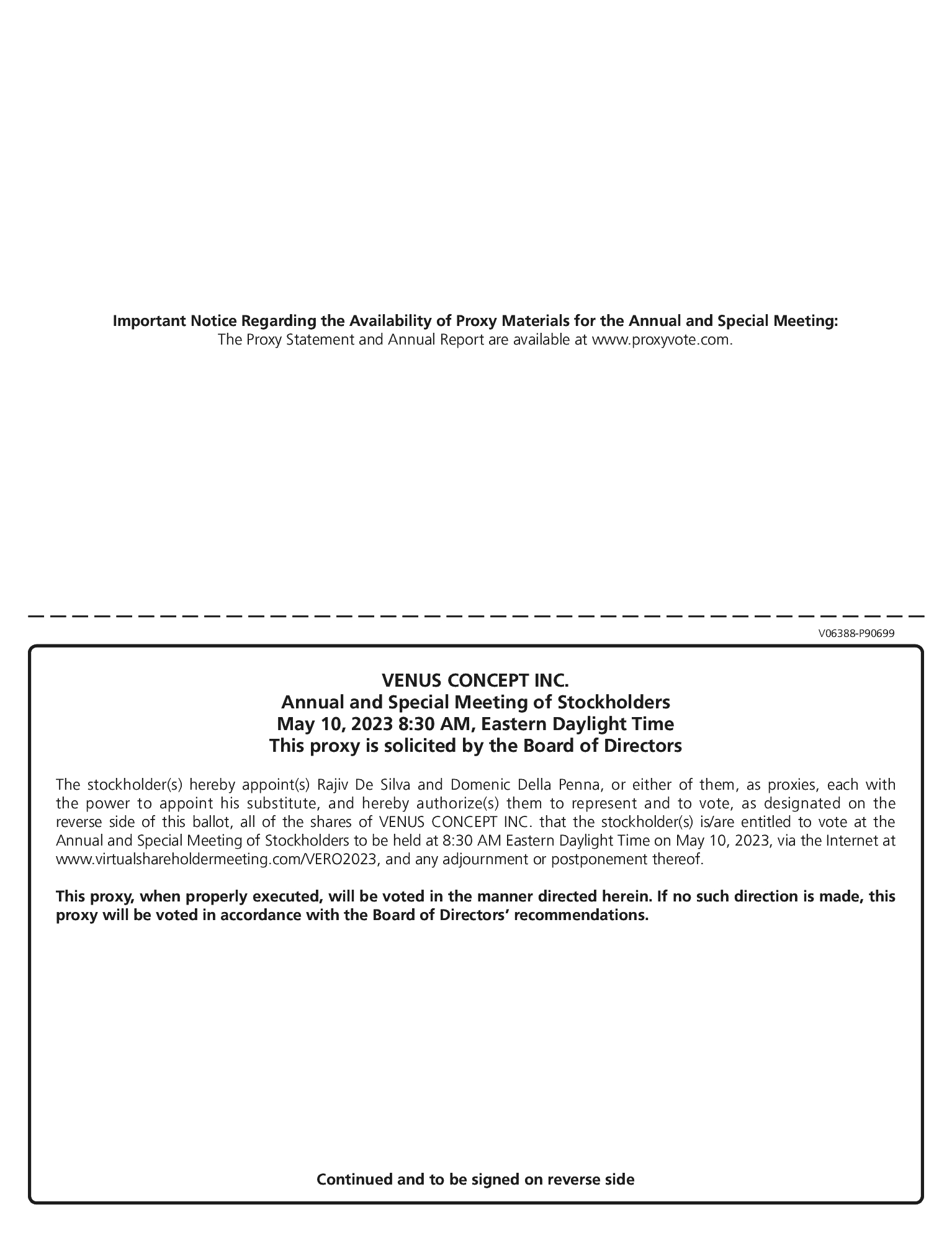 On January 1, 2018, Venus Concept Ltd. entered into a distribution agreement with Technicalbiomed Co., Ltd (“TBC”) pursuant to which TBC distributes our products in Thailand. Mr. Sinay is a 30% shareholder of TBC. For the years ended December 31, 2022 and 2021, TBC purchased products in the amount of $951,000 and $537,000, respectively, under this distribution agreement.
