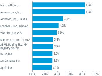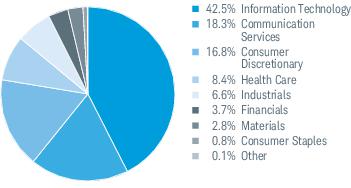 Among the sectors in the Russell 1000® Growth Index, all posted positive returns for the reporting period. The financials sector was the top performer, driven in part by higher-than-expected trading revenues and