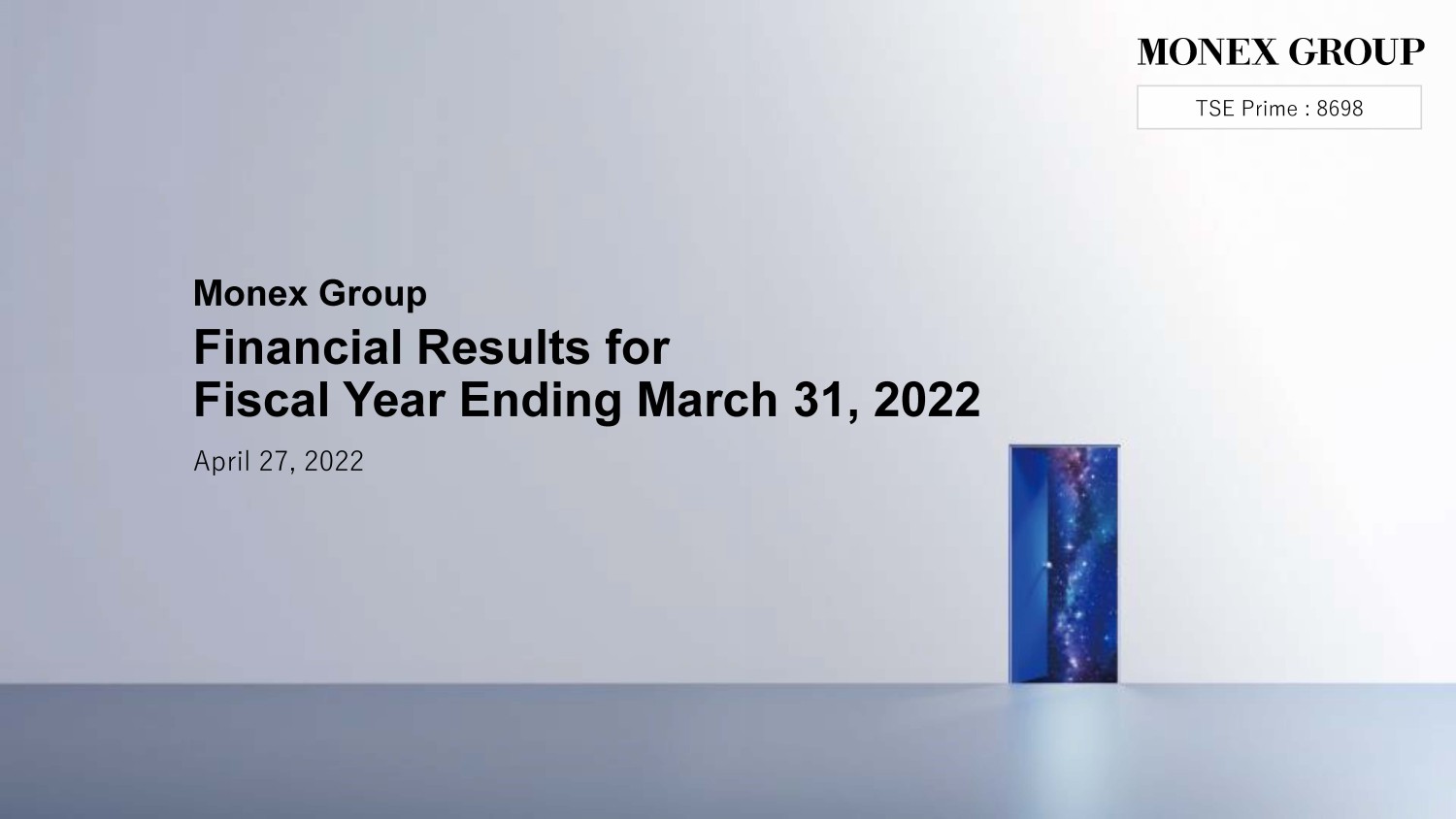 Financial Results for Fiscal Year Ending March 31, 2022 April 27, 2022 Monex Group TSE Prime : 8698