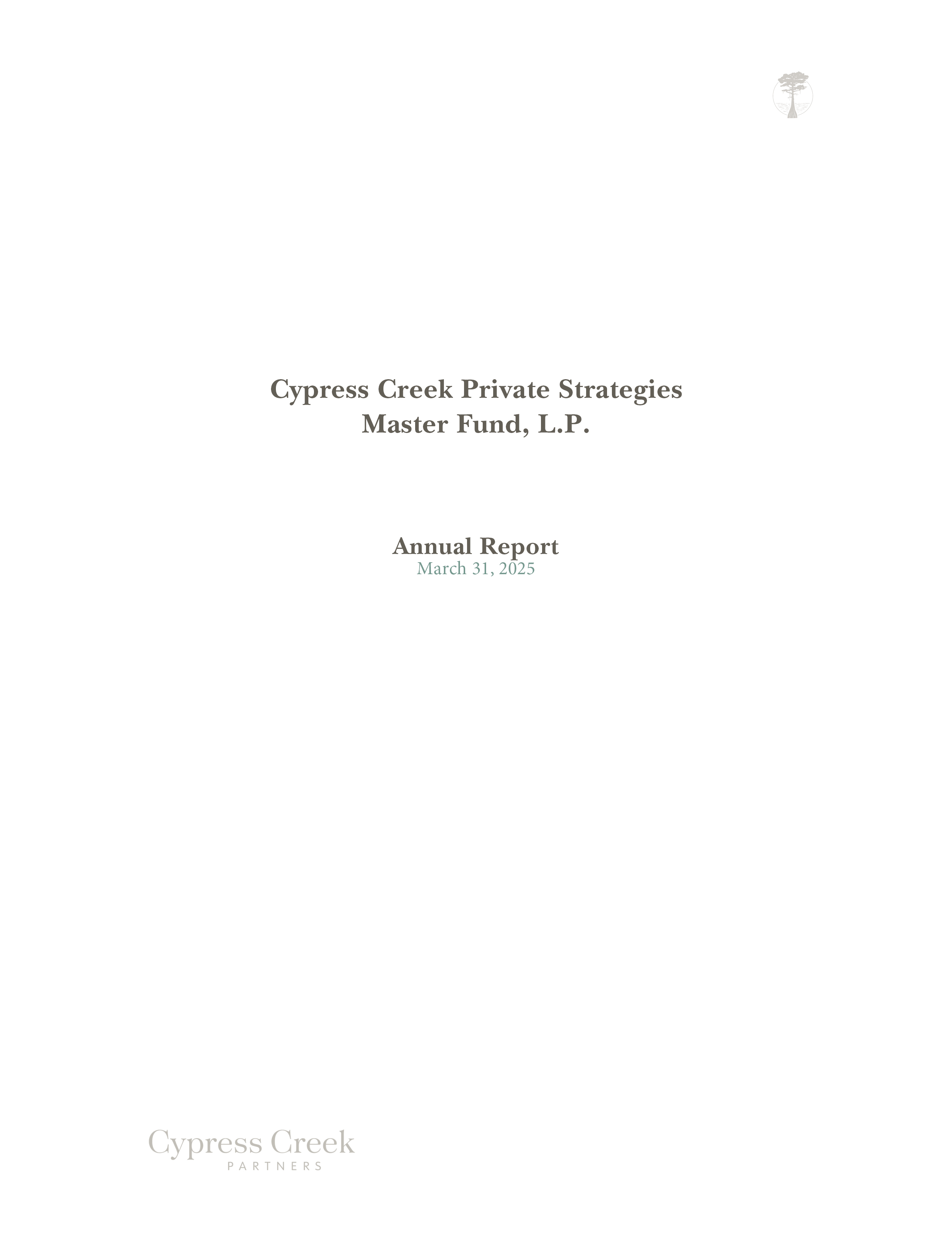 For the twelve-month period ending March 31, 2025, Cypress Creek Private Strategies Master Fund, L.P. (the “Fund”), returned 7.6% net of fees and expenses, outperforming the 7.2% return of its public equity based primary benchmark, the MSCI All Country World Total Return Index (the “MSCI ACWI”). The Private Investment (“PI”) portfolio, the focus of the Cypress Creek investment strategy, comprised of Private Equity and Private Real Assets, returned 10.1%/8.4% (gross/net) for the trailing twelve-months ending March 31, 2025, with the Core Managers returning 12.6%/11.0% (gross/net) and the non-core returning 6.1%/4.5% (gross/net). The PI portfolio allocation represents approximately 87% of the Master Fund’s net assets with Core Managers representing 54.1% of the portfolio.