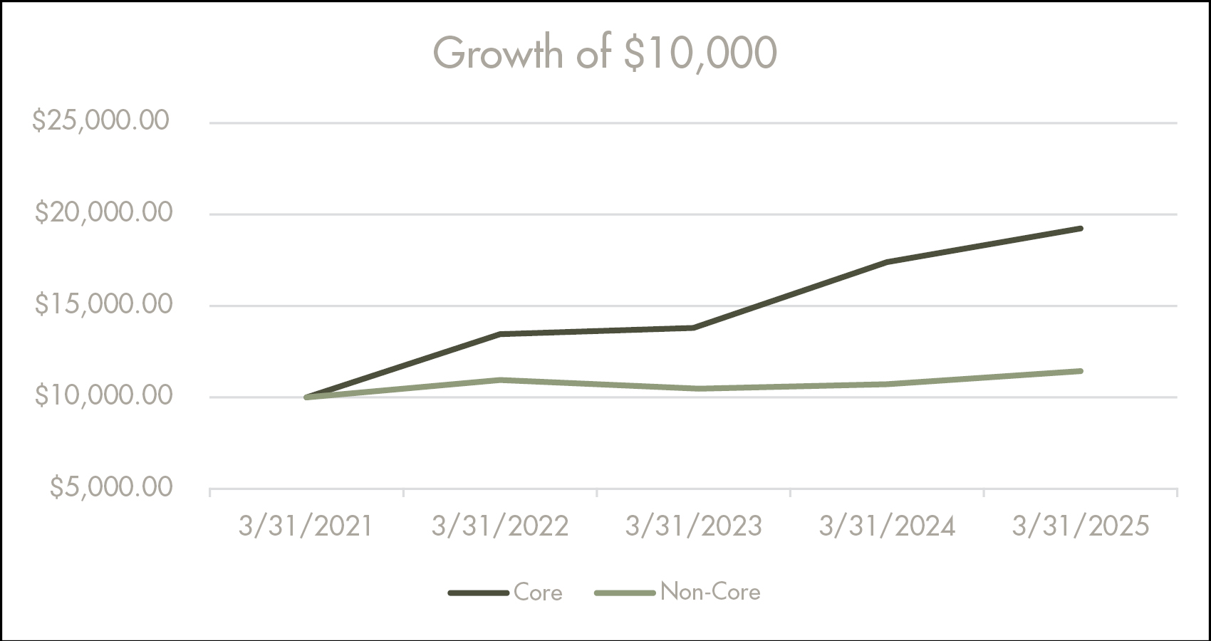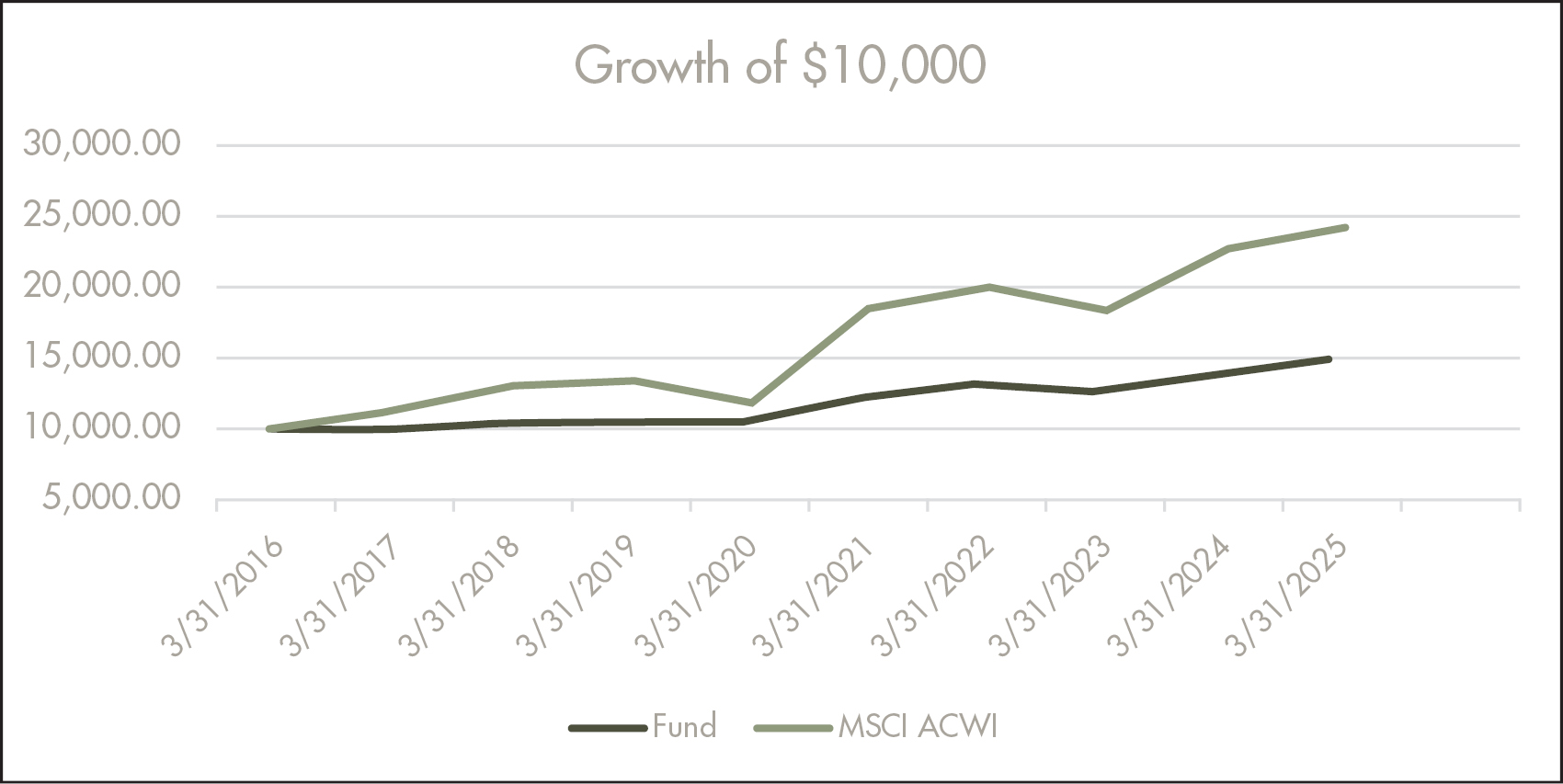 During fiscal year 2025 ended March 31, 2025, Cypress Creek made three new Private Investment (“PI”) portfolio commitments (two in Private Equity and one in Real Assets). Since taking over management of the Fund in 2021, we have made significant progress in repositioning the PI portfolio to align with Cypress Creek’s unique approach alongside less established managers and operators. As of March 31, 2025, 62% of the Fund’s PI NAV and 74% of the Fund’s PI total exposure (NAV plus unfunded commitments) is alongside Cypress Creek Core Managers, up from 47% and 56%, respectively year-over-year. The Core Managers in the PI portfolio, which is the focus of Cypress Creek’s investment strategy, have made a meaningful contribution to the Fund’s overall performance, generating a 19.5%/17.9% (gross/net) annualized return, since March 1, 2021, and for the twelve-month period ending March 31, 2025, 12.6%/11.0% (gross/net) return.