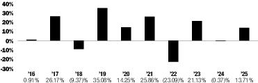 The bar chart below shows how the Fund has performed. The table below the bar chart shows the Fund’s average annual total returns (before and after taxes). The bar chart and