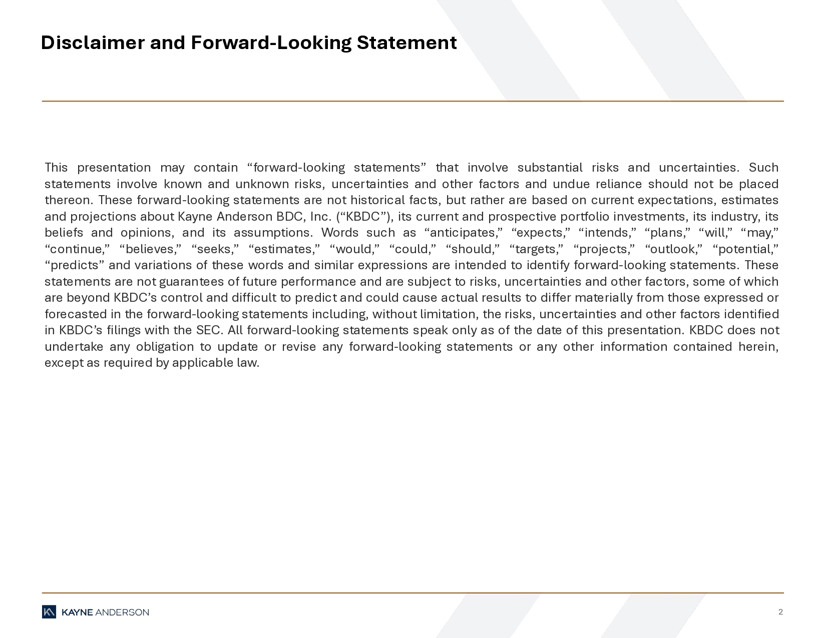 | 99.2 | Kayne Anderson BDC, Inc. Fourth Quarter 2024 Earnings Presentation. | |