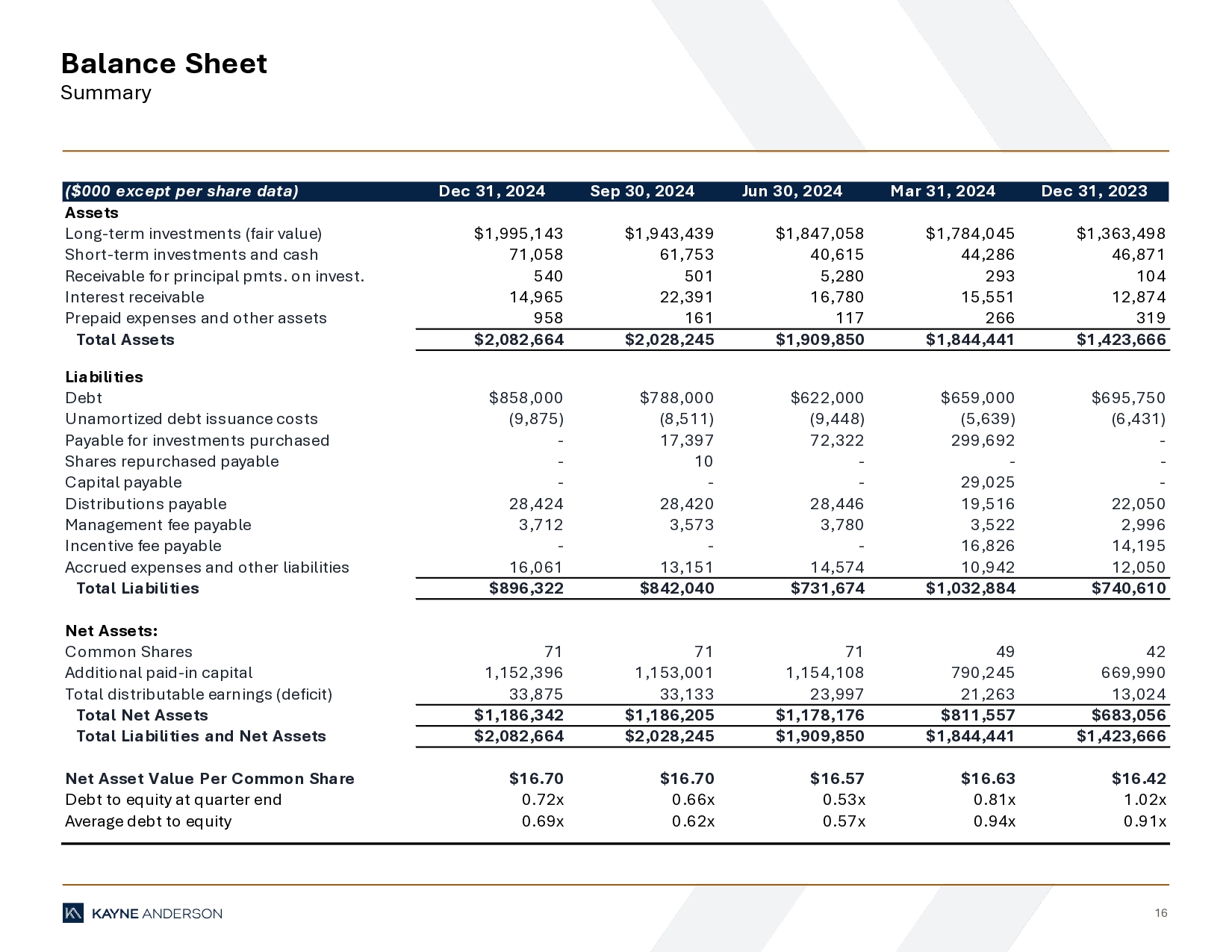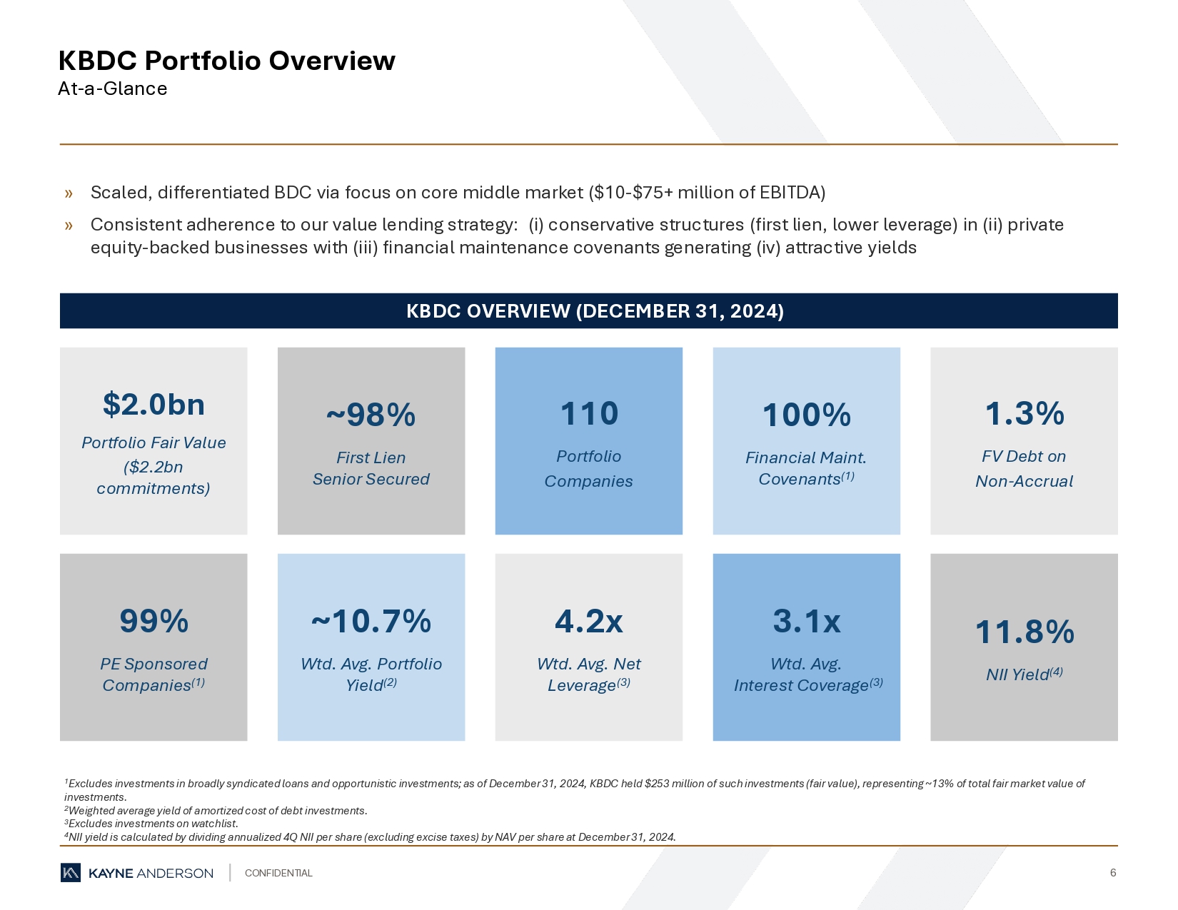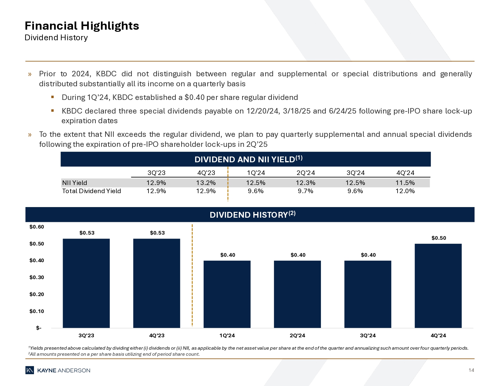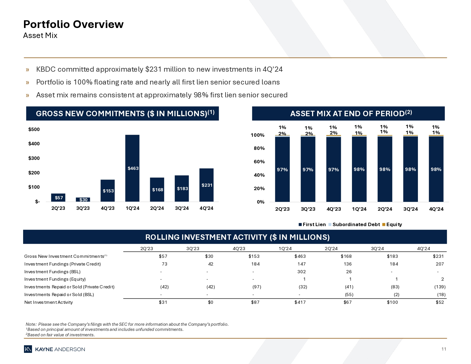 “During the fourth quarter we continued to make progress towards our leverage target and expect to achieve the low end of our debt-to-equity target range of 1.0x – 1.25x by the second or third quarter of 2025,” said Doug Goodwillie, Co-Chief Executive Officer. “We continue to identify and secure middle market loans at compelling risk-adjusted returns, with the first quarter of 2025 positioning itself as one of our strongest quarters for origination since the inception of KBDC.”