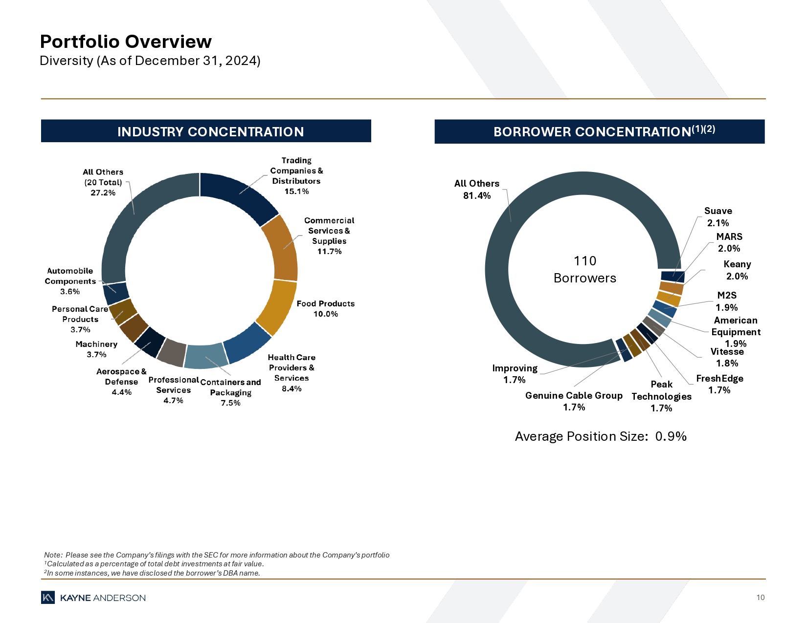 “During the fourth quarter we added 8 new investments to our platform consistent with our strategy of lending to stable industries, producing attractive debt investment opportunities with lower leverage and correspondingly higher interest coverage,” said Ken Leonard, Co-Chief Executive Officer. “Our portfolio continued to perform well during the fourth quarter with only 1.3% of debt investments on non-accrual status and just 1.1% of interest income for the quarter represented by PIK income.”