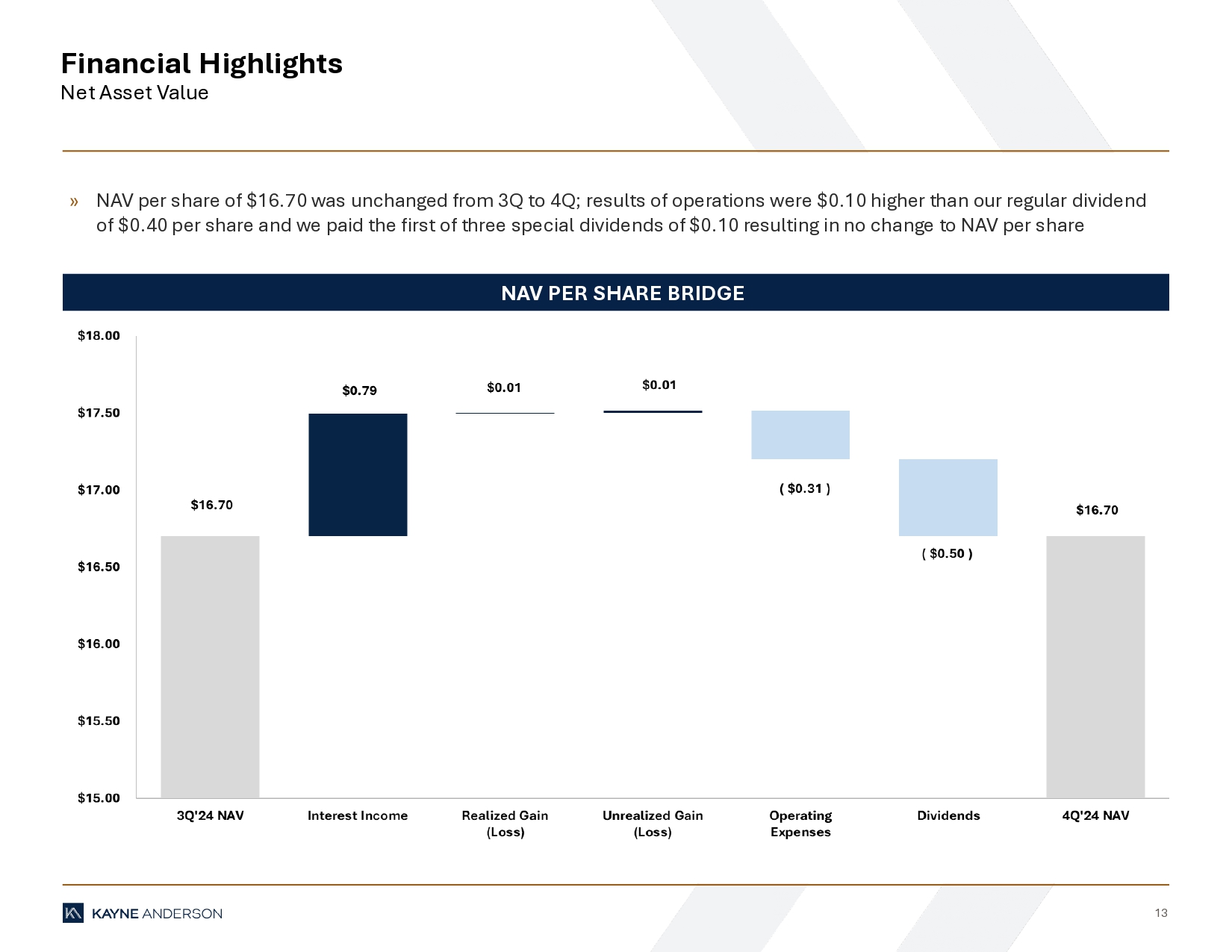 | ● | Net asset value of $16.70 per share, unchanged from $16.70 per share as of September 30, 2024, primarily the result of paying out all of the income during the quarter with regular distribution and the first of three special dividends of $0.10 per share declared in conjunction with the Company’s IPO; |