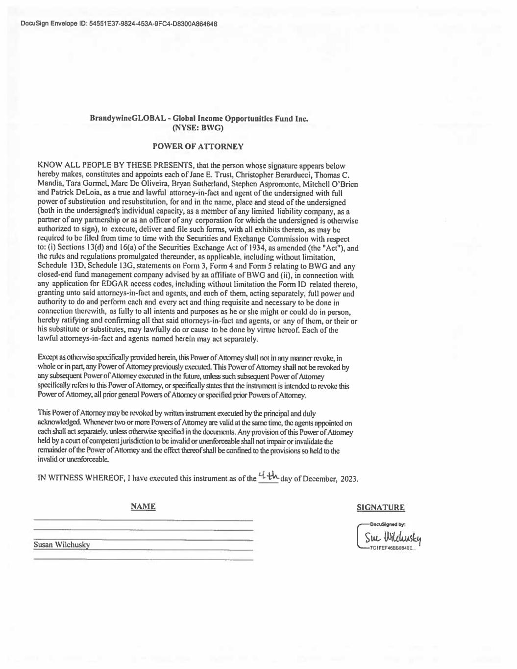 /s/Marc A. De Oliveira by Power of Attorney for Susan Wilchusky | 12/18/2023 | |