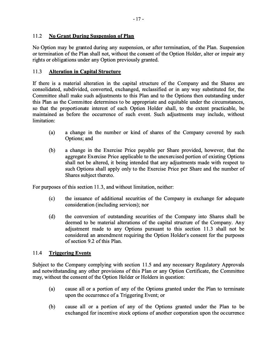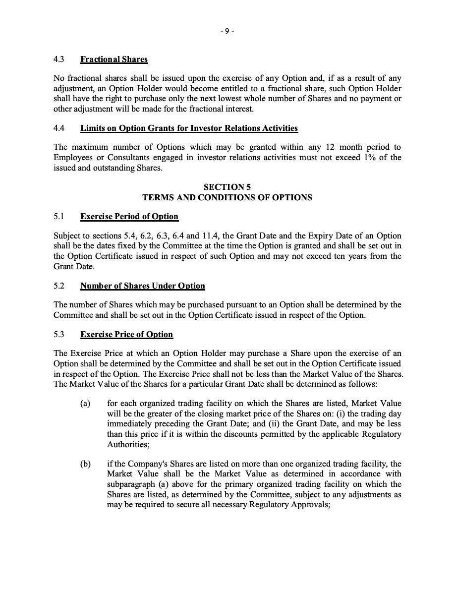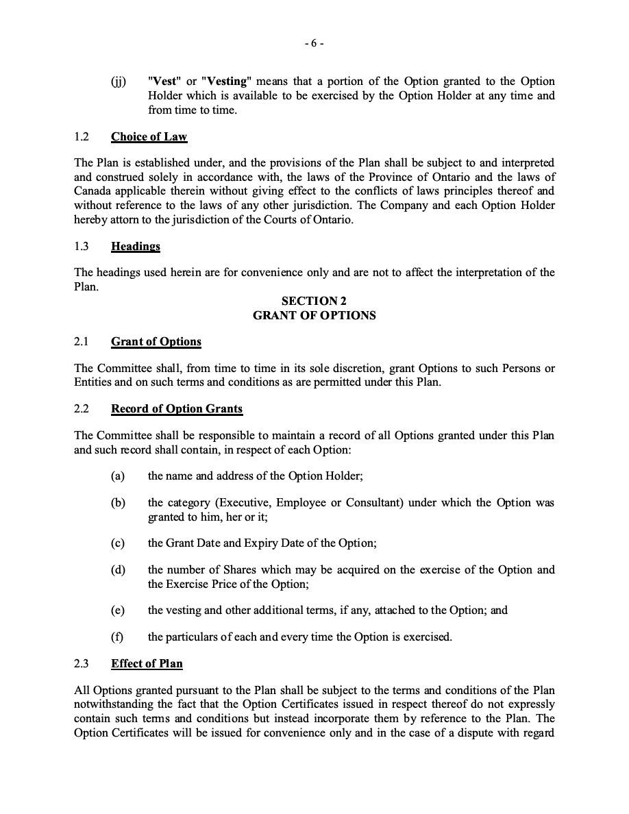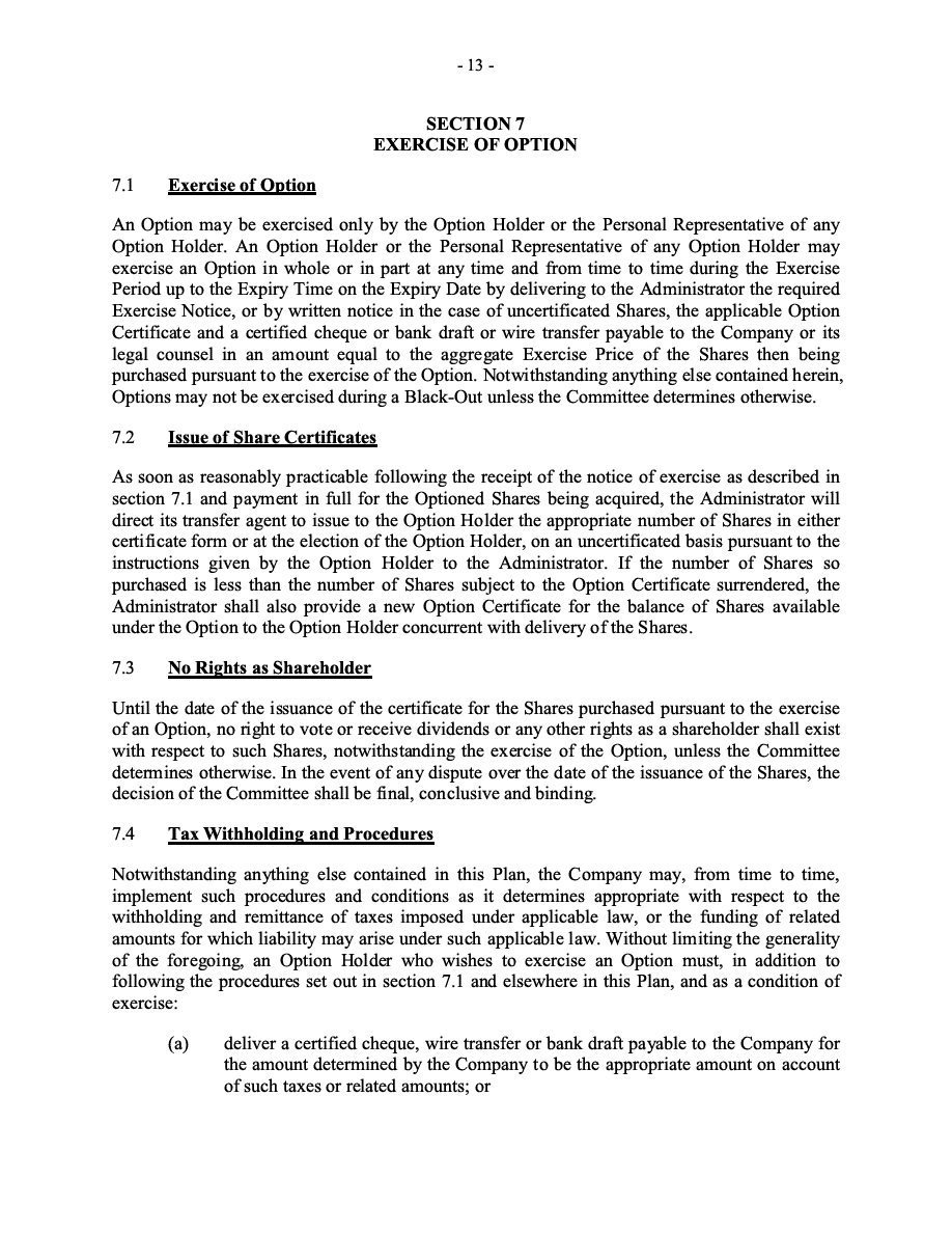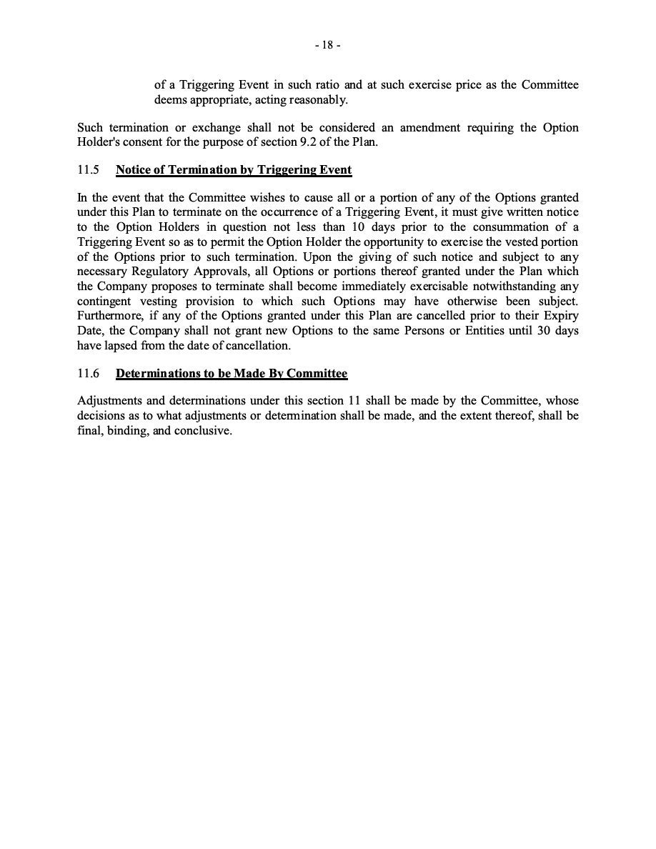 The Securities are to be sold pursuant to a purchase, underwriting or similar agreement in substantially the form to be filed under a Report on Form 6-K. The Subscription Receipts will be issued under one or more subscription receipt agreements (each, a “Subscription Receipt Agreement”). The Warrants will be issued under one or more warrant agreements or warrant indentures (each, a “Warrant Agreement”). The Units will be issued under one or more unit purchase agreements (each a “Unit Purchase Agreement”).