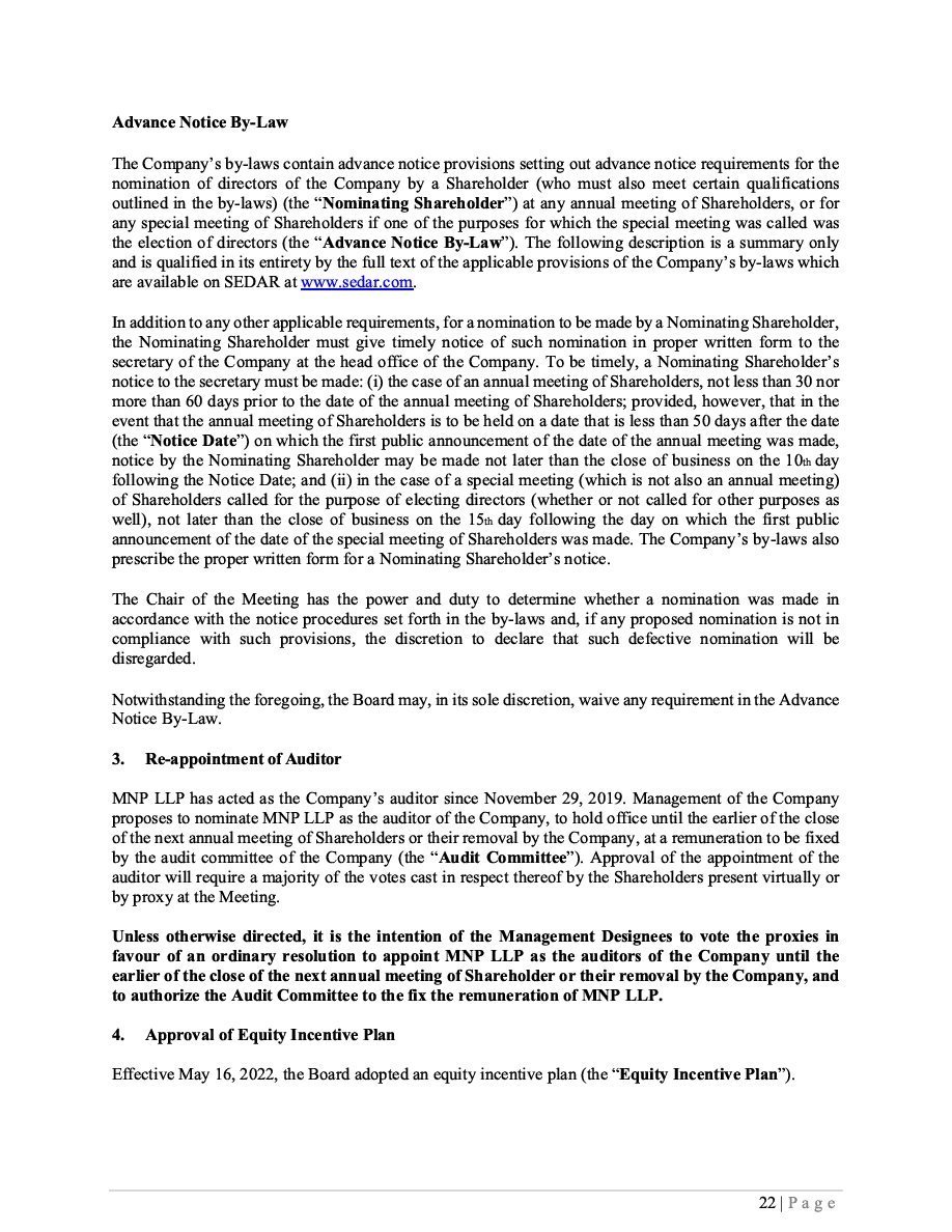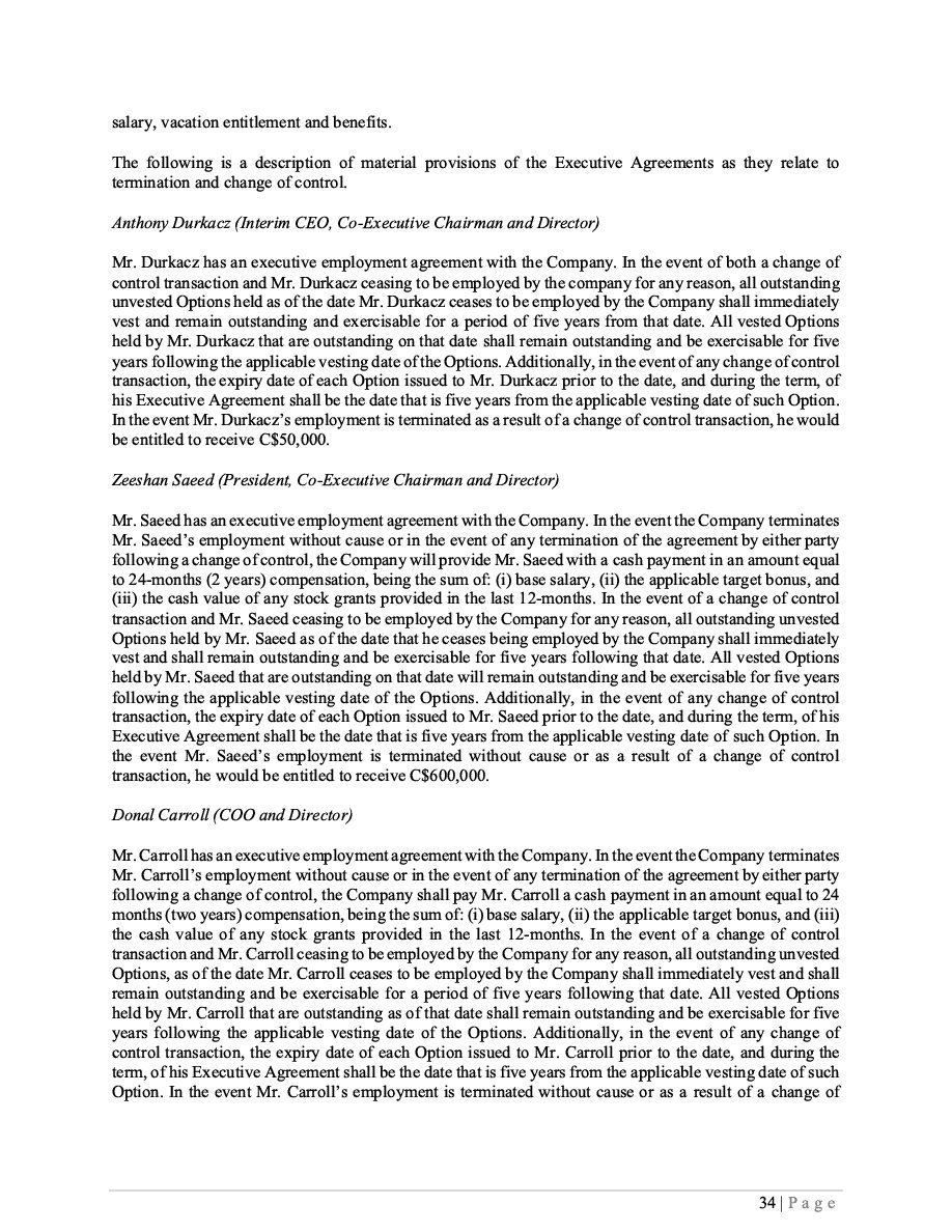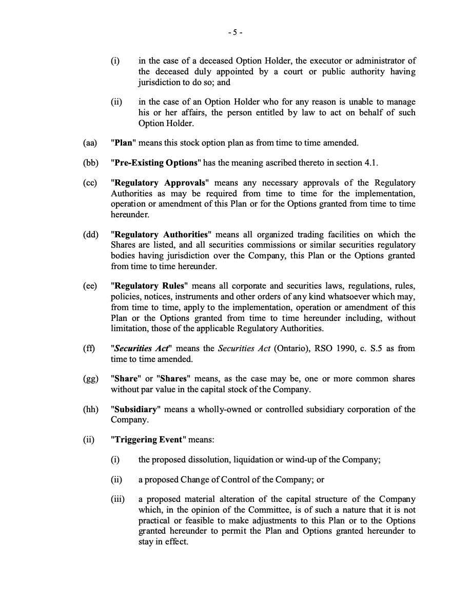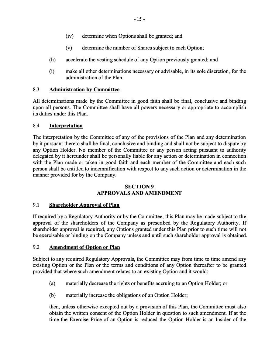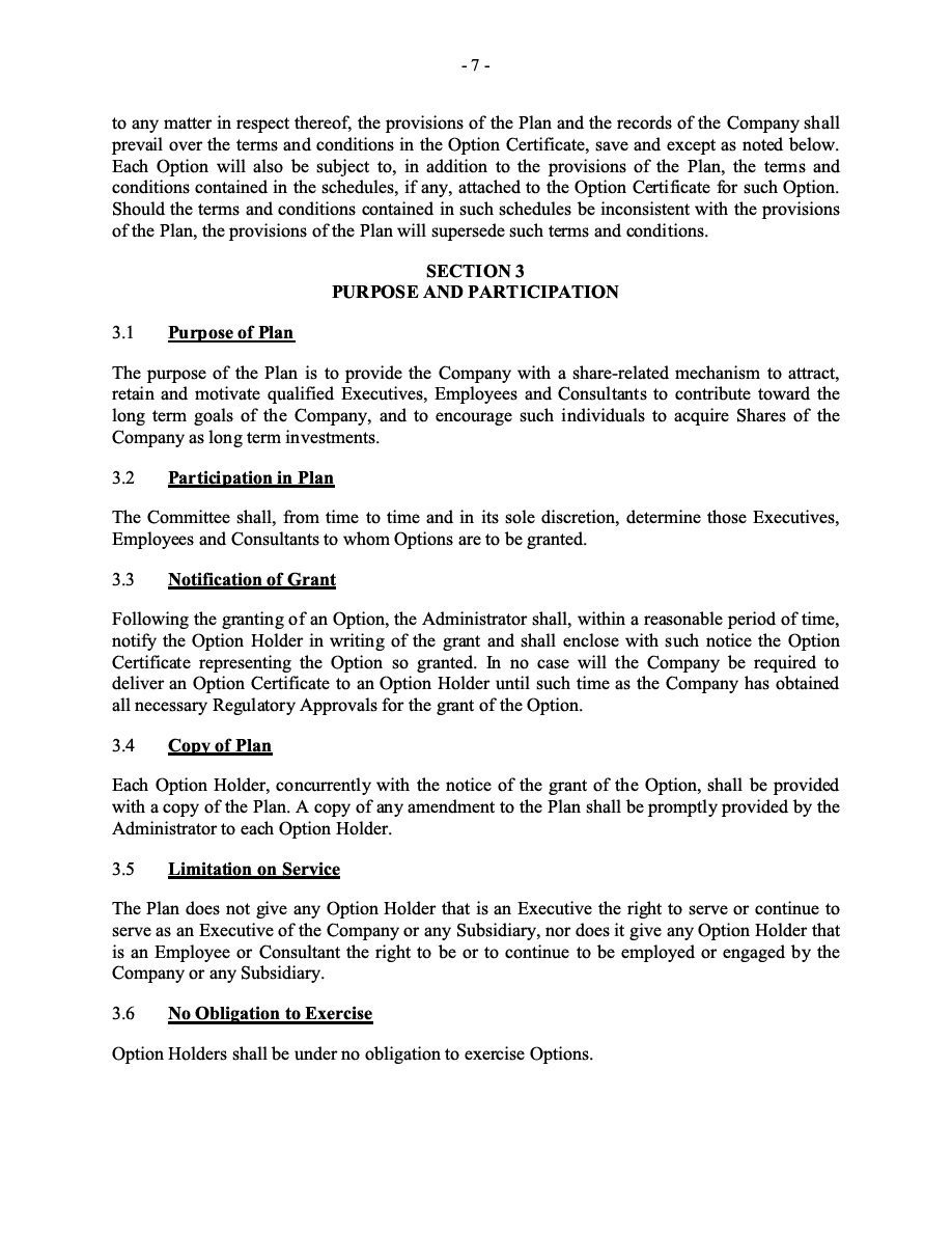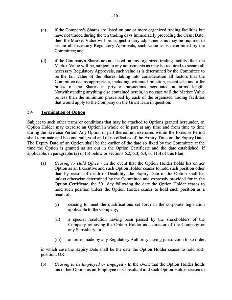 The Securities are to be sold pursuant to a purchase, underwriting or similar agreement in substantially the form to be filed under a Report on Form 6-K. The Subscription Receipts will be issued under one or more subscription receipt agreements (each, a “Subscription Receipt Agreement”). The Warrants will be issued under one or more warrant agreements or warrant indentures (each, a “Warrant Agreement”). The Units will be issued under one or more unit purchase agreements (each a “Unit Purchase Agreement”).