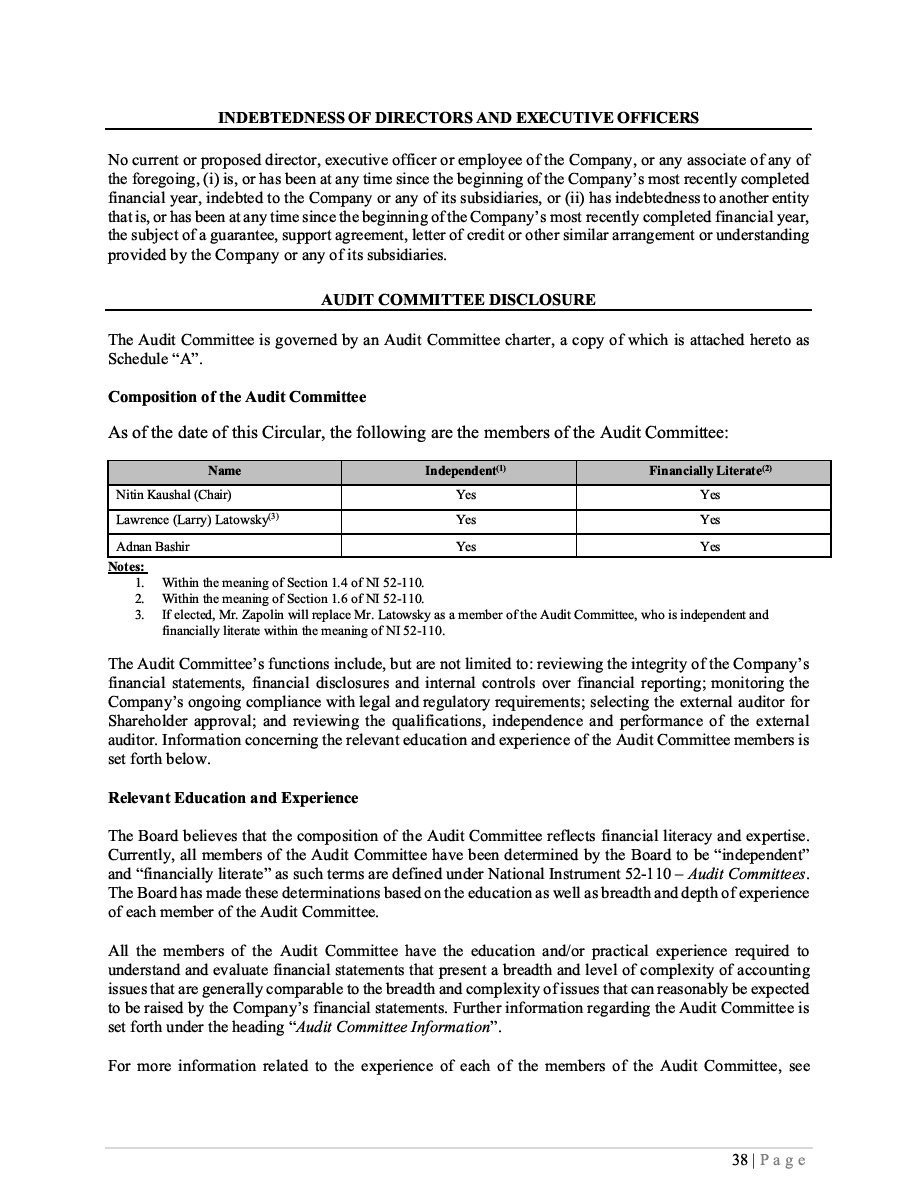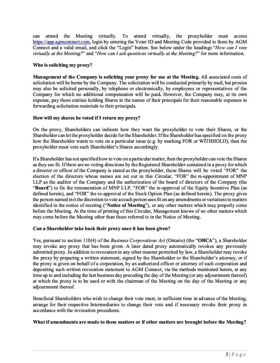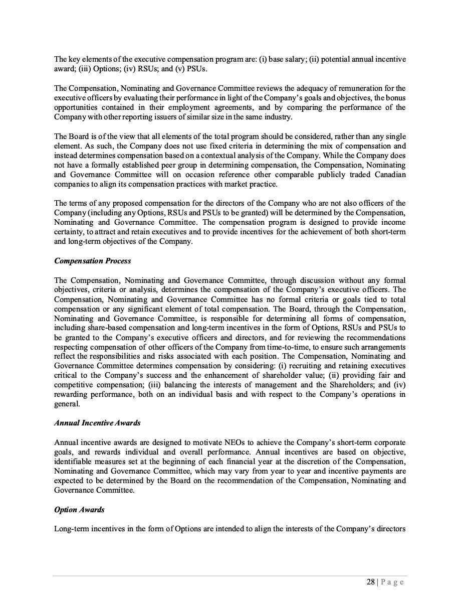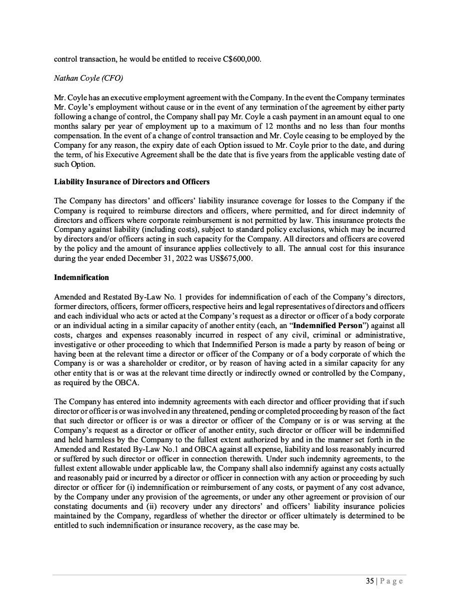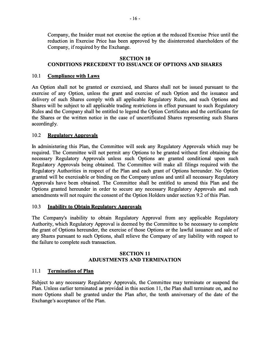 The Securities are to be sold pursuant to a purchase, underwriting or similar agreement in substantially the form to be filed under a Report on Form 6-K. The Subscription Receipts will be issued under one or more subscription receipt agreements (each, a “Subscription Receipt Agreement”). The Warrants will be issued under one or more warrant agreements or warrant indentures (each, a “Warrant Agreement”). The Units will be issued under one or more unit purchase agreements (each a “Unit Purchase Agreement”).