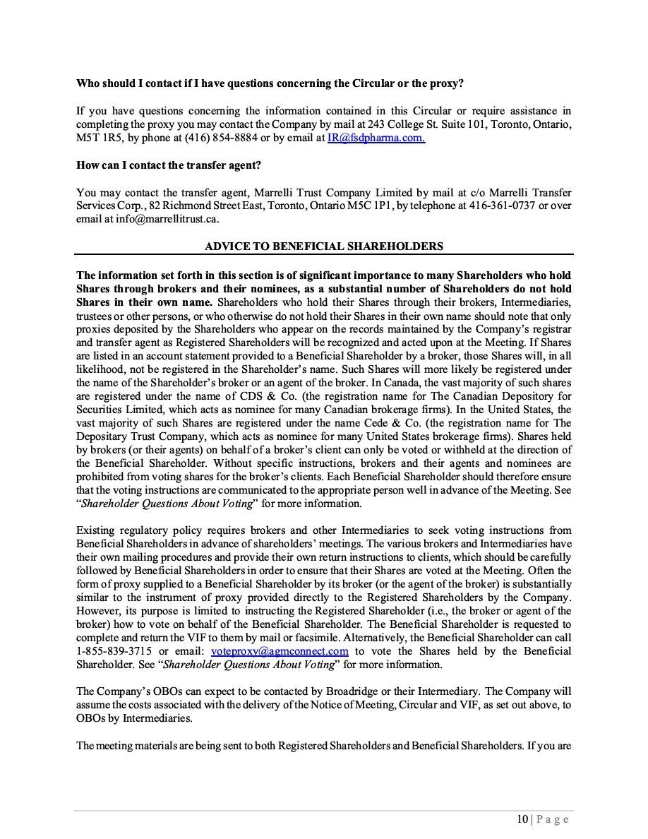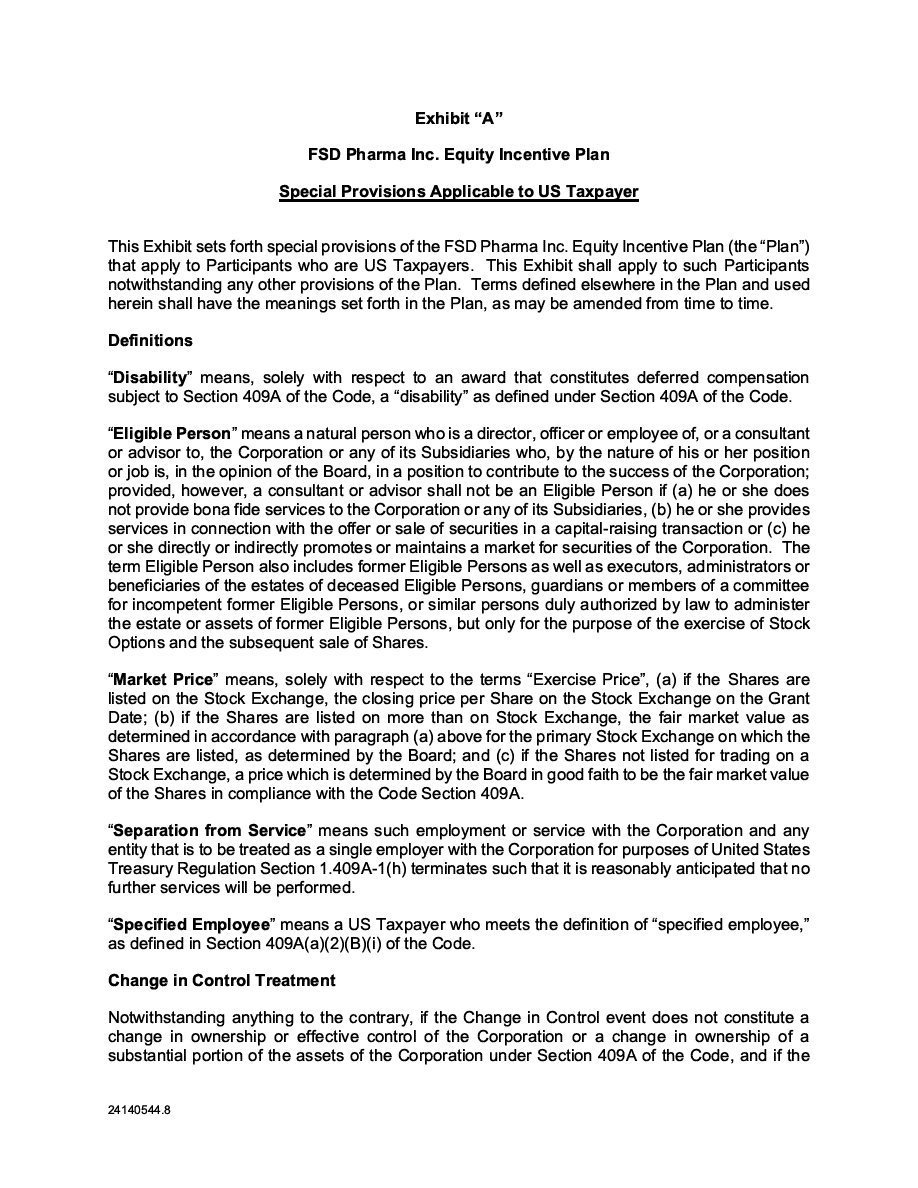 | FSD Pharma Inc. 4000-199 Bay Street Toronto, Ontario M5L 1A9 |
