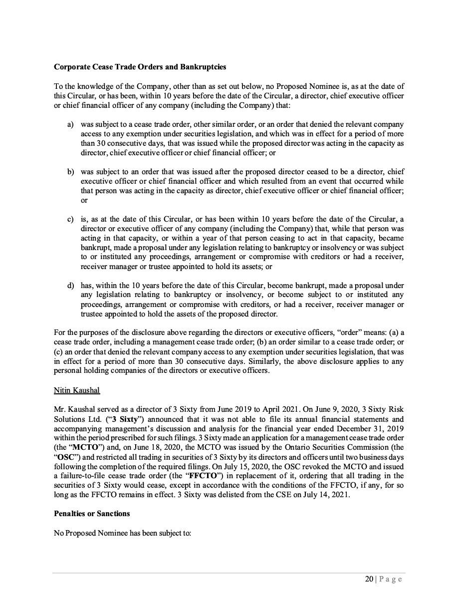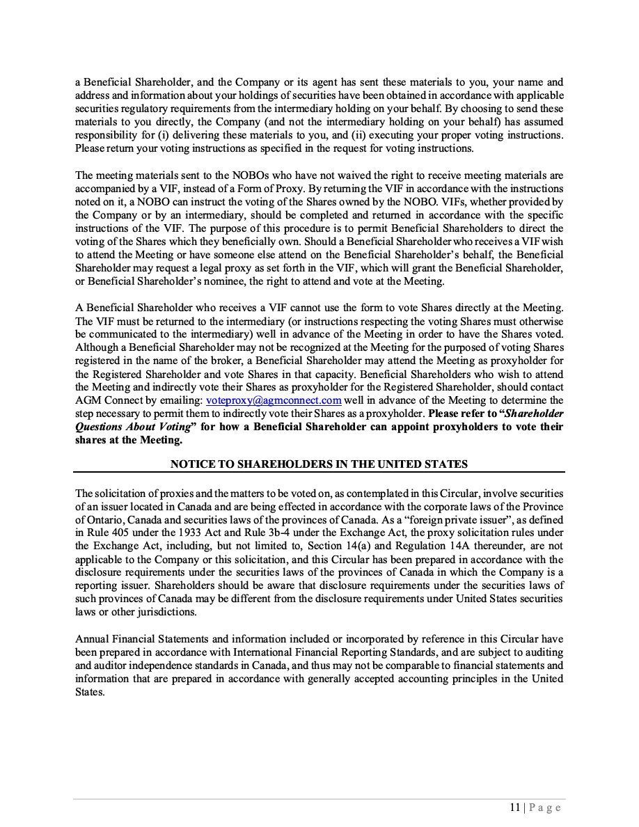 Readers should rely only on information contained or incorporated by reference in this Prospectus and any applicable Prospectus Supplement. We have not authorized anyone to provide the reader with different information. References to this “Prospectus” include documents incorporated by reference herein. See “Documents Incorporated by Reference”. We are not making an offer of the Securities in any jurisdiction where the offer is not permitted. Readers should not assume that the information contained in this Prospectus is accurate as of any date other than the date on the front of this Prospectus, unless otherwise noted herein or as required by law. It should be assumed that the information appearing in this Prospectus and the documents incorporated herein by reference are accurate only as of their respective dates. Our business, operations, financial condition, results of operations, cash flow and prospects may have changed since those dates.
