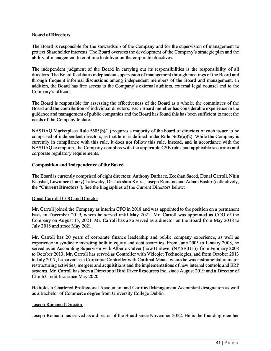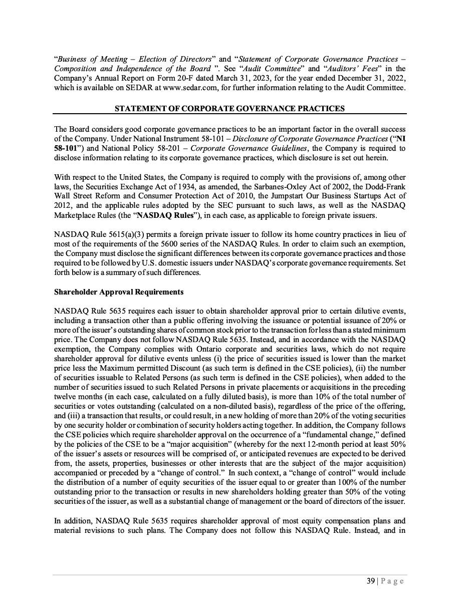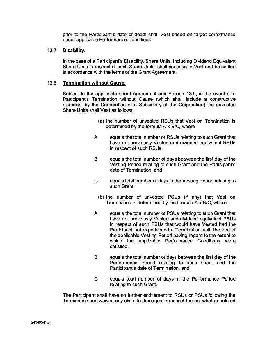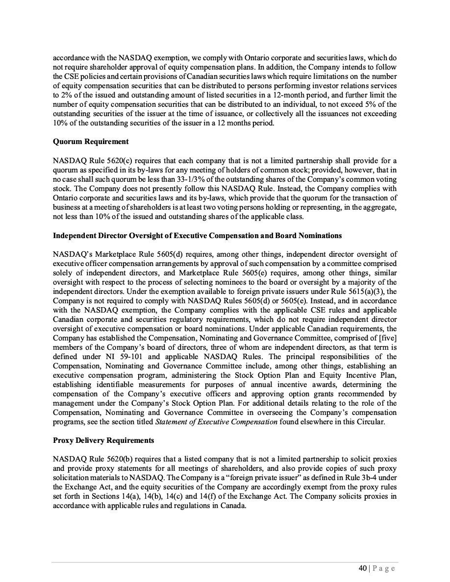| (1) | The Registrant is registering an indeterminate principal amount or number of its Class B Subordinate Voting Shares, Subscription Receipts, Warrants, and Units which may be offered in primary offerings from time to time at indeterminate prices, with an aggregate offering price not to exceed $50,000. Pursuant to Rule 416 under the Securities Act of 1933, as amended (the “Securities Act”), this Registration Statement shall also cover any additional securities to be offered or issued from stock splits, stock dividends, recapitalizations or similar transactions. |