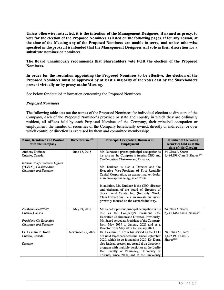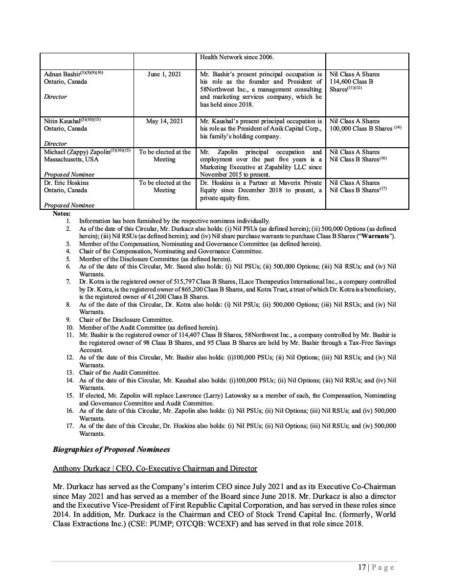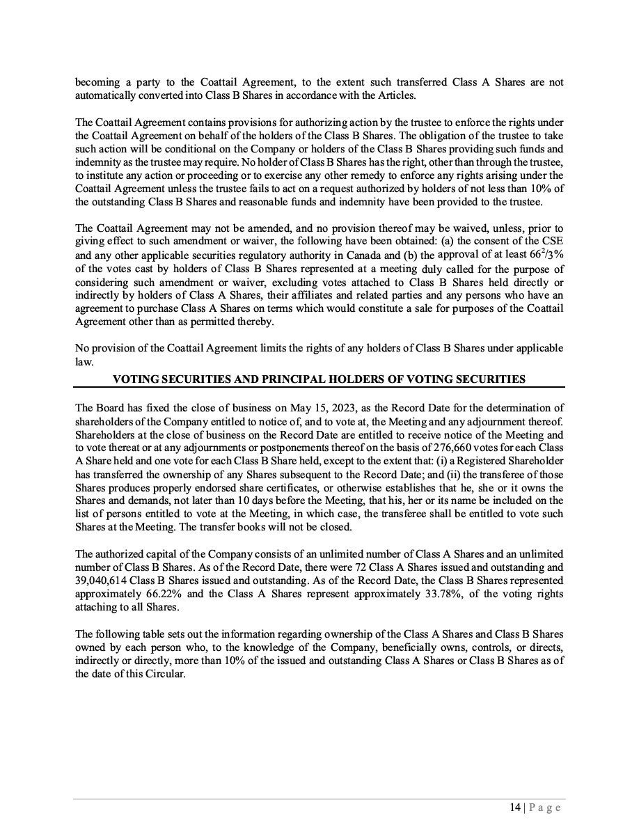 Class B Subordinate Voting Shares Subscription Receipts Warrants Units ____________________________________