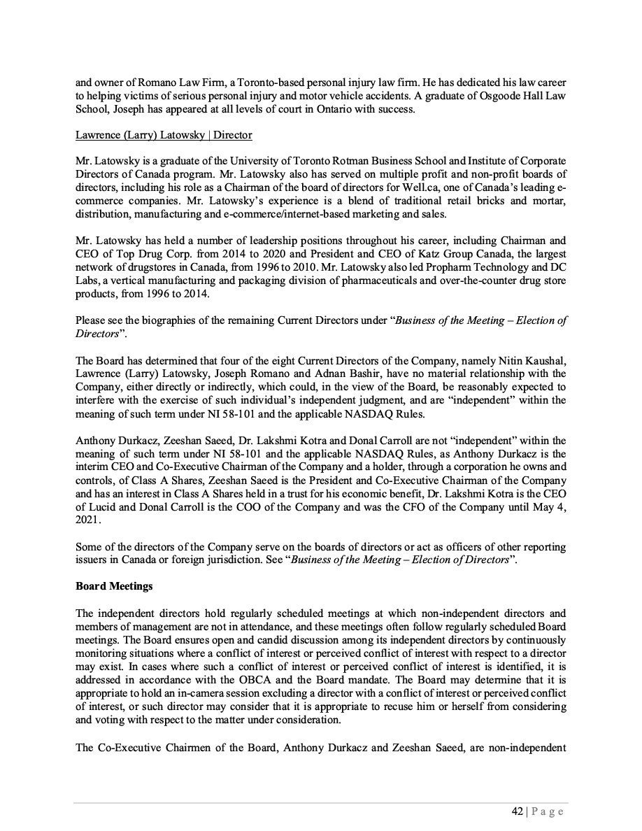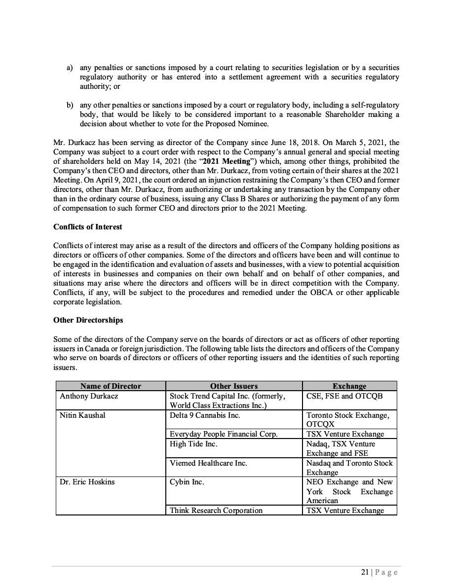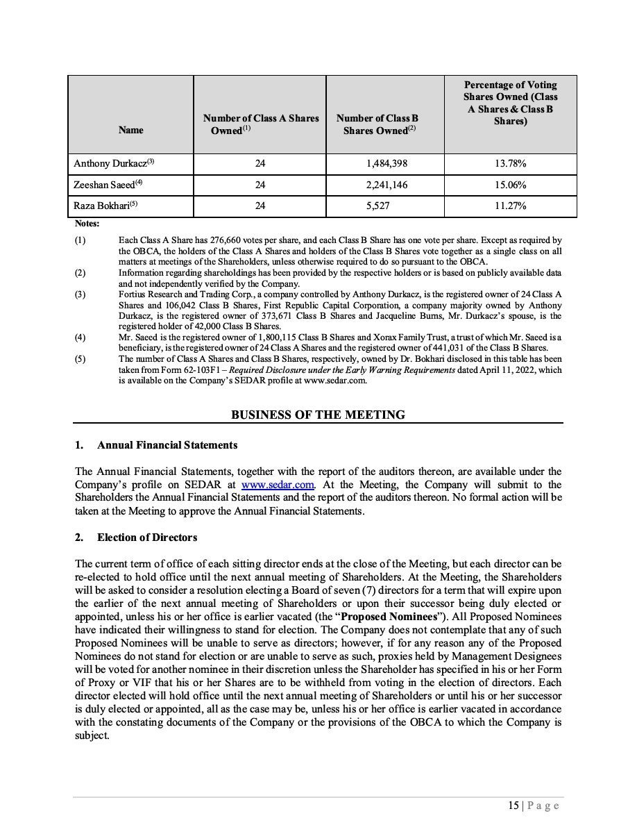Class B Subordinate Voting Shares Subscription Receipts Warrants Units ____________________________________