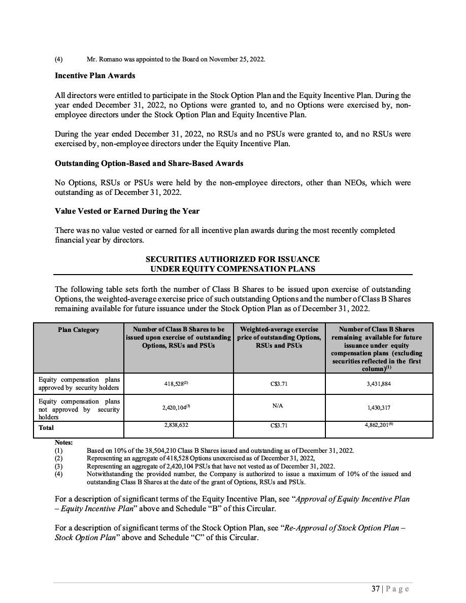 | Equity | Class B Subordinate Voting Shares, no par value | 0.00014760 | |||||