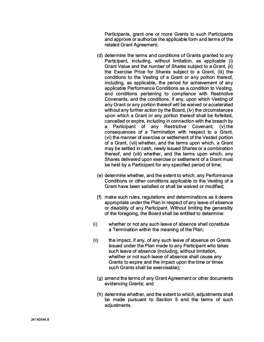 | 1. | With respect to Class B Shares, when all necessary corporate action of the Corporation has been taken to approve an issuance of Class B Shares, and certificates representing the Class B Shares have been duly executed, countersigned, registered and delivered (or noncertificated Class B Shares shall have been properly issued), either (i) in accordance with the applicable definitive purchase, underwriting or similar agreement approved by the Board, upon payment of the consideration therefor provided for in such definitive purchase, underwriting or similar agreement, as applicable, or (ii) upon conversion, exchange or exercise of any other Security in accordance with the terms of such Security or the instrument governing such Security providing for the conversion, exchange or exercise as approved by the Board, for the consideration therefor set forth in the applicable agreement and approved by the Board, Class B Shares, including the Class B Shares that form a part of any Units, will be validly issued, fully paid and non-assessable. |