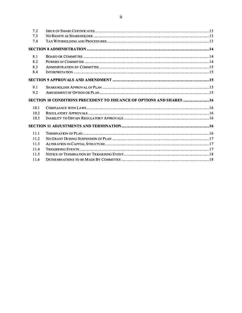 Our opinion is limited to law of the Province of Ontario, including all applicable provisions of the Business Corporations Act (Ontario) (the “Business Corporations Act”), and the federal laws of Canada applicable in the Province of Ontario. We have not considered, and have not expressed any opinion with regard to, or as to the effect of, any other law, rule, or regulation, state or federal, applicable to the Corporation. In particular, we express no opinion as to United States federal securities laws.