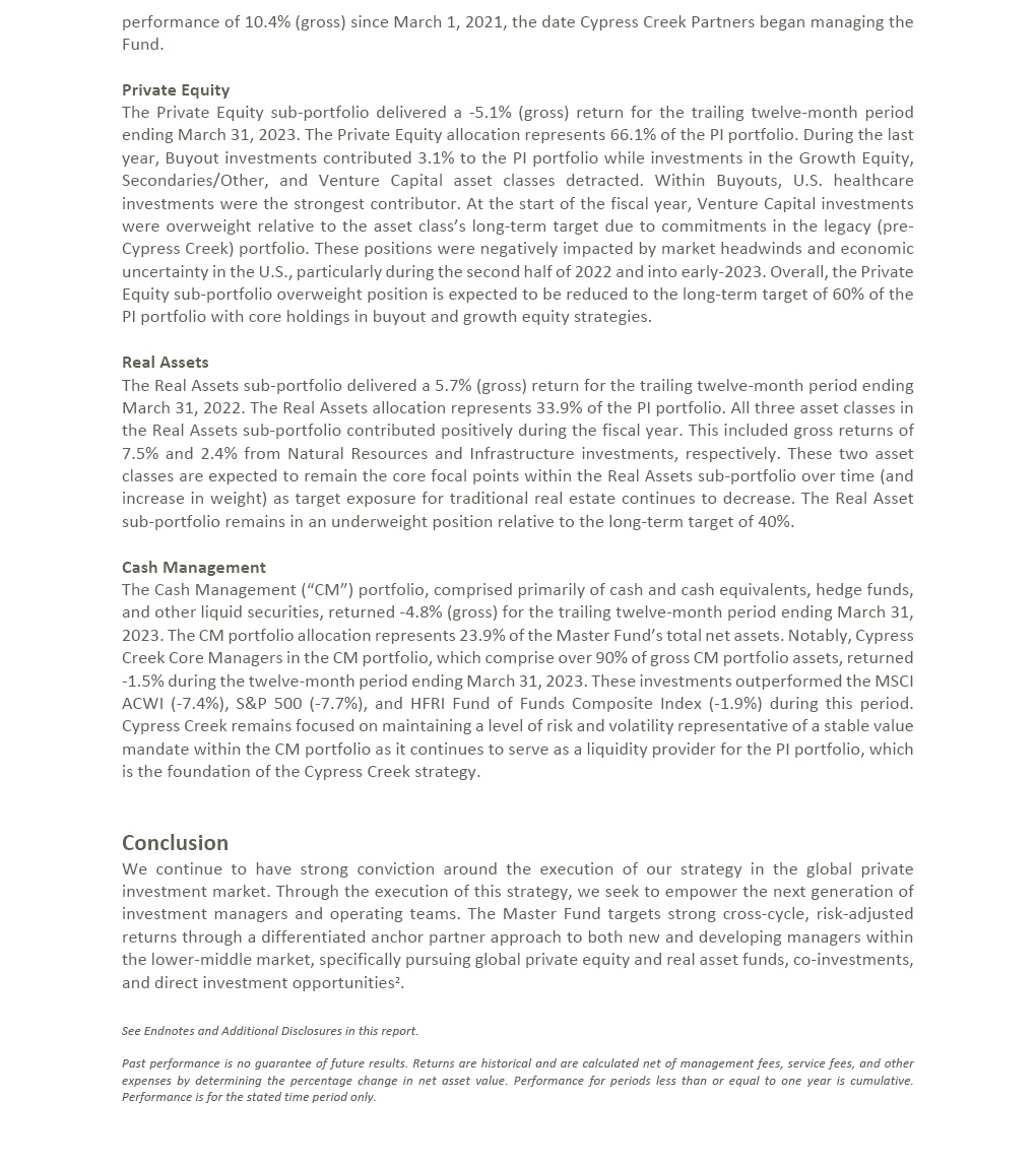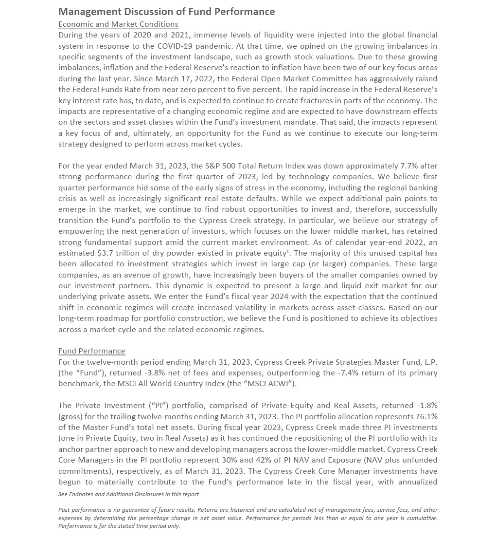 CYPRESS CREEK PRIVATE STRATEGIES MASTER FUND, L.P.