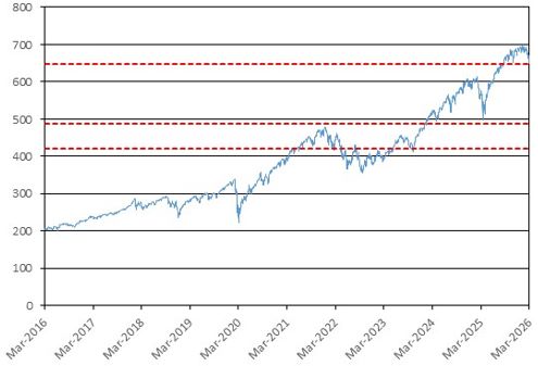 With respect to SPY: $648.57 (100.00% of its Initial Value).