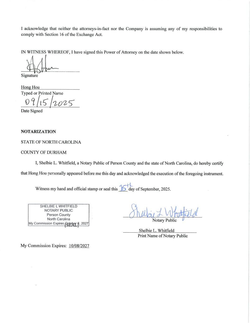 Melissa Garrett as agent for Hong Hou | 12/19/2025 | |