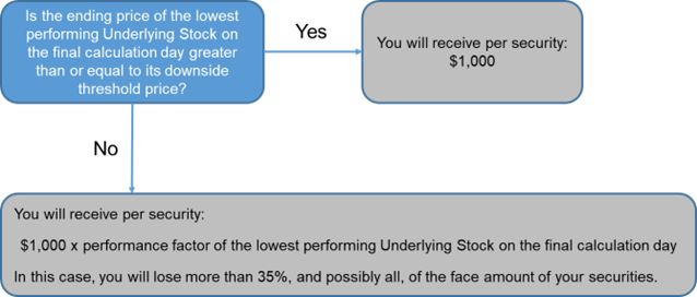 closing price of the lowest performing Underlying Stock on the final calculation day is less than its downside threshold price, you will lose more than 35%, and possibly all, of the face amount of your securities. The downside threshold