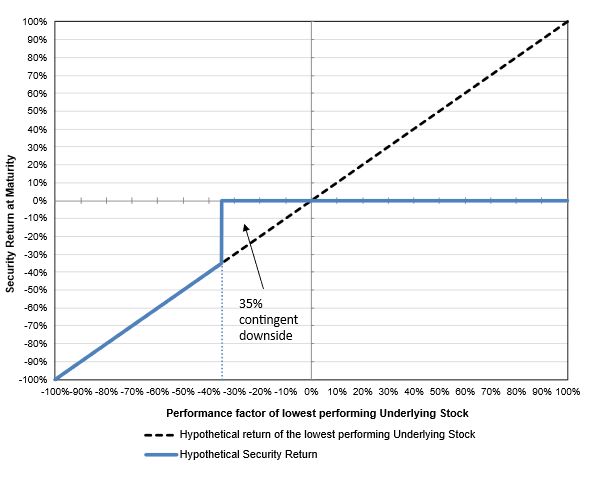 are unwilling to accept the risk that the stock closing price of the lowest performing Underlying Stock on the final calculation day may decline by more than 35% from its starting price;