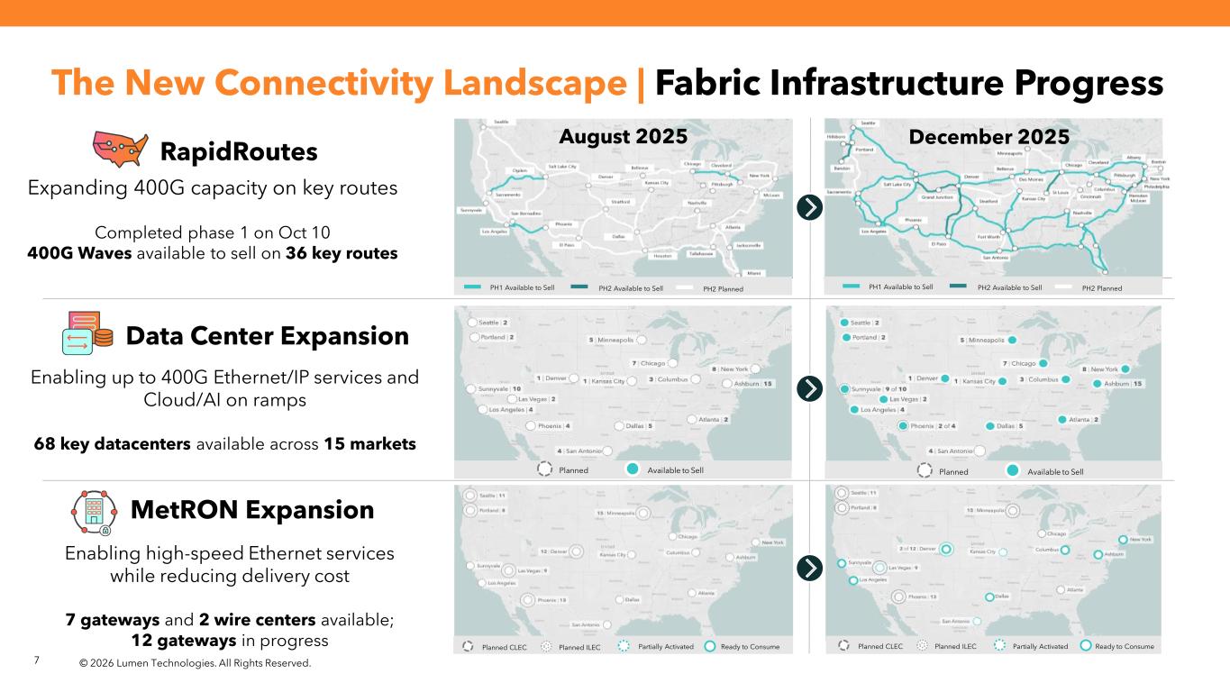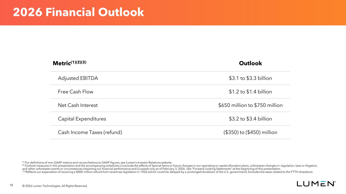 •Operational Execution: Exceeded cost reduction target, ending the year with over $400 million in run-rate savings. The company is on track for $700 million of cost savings exiting 2026 and targeting $1 billion exiting 2027, driving expected Adjusted EBITDA growth and supporting its strategy to modernize the network for AI.