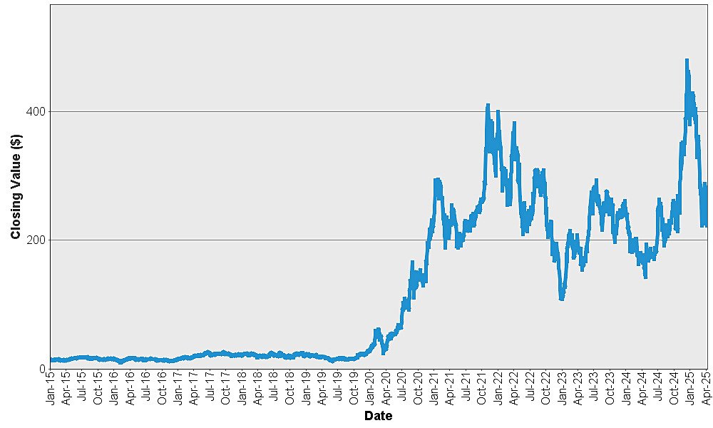 Hypothetical closing value of Tesla, Inc. on hypothetical valuation date