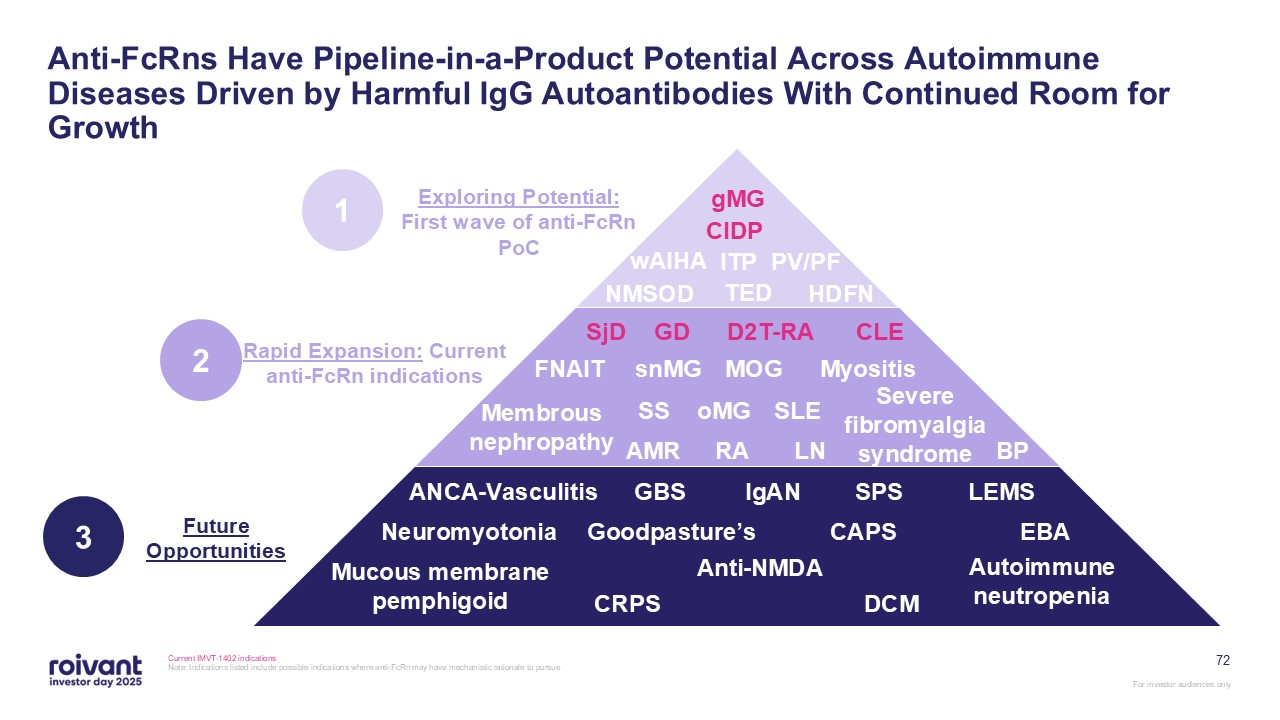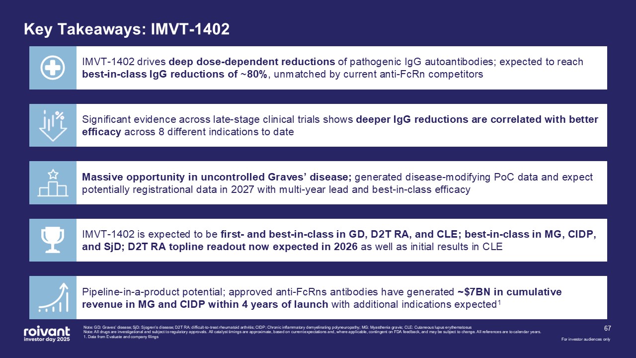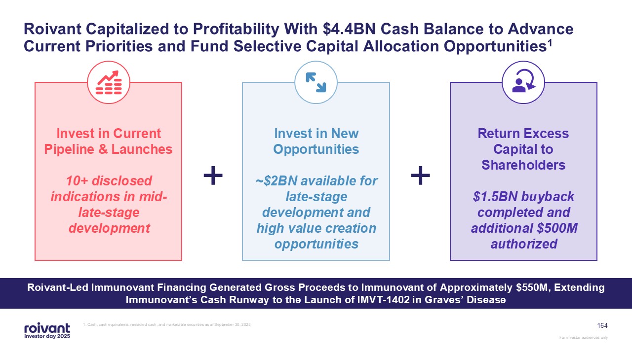extending Immunovant’s cash runway to the launch of IMVT-1402 in Graves’ disease (GD); Roivant cash balance continues to support runway into profitability