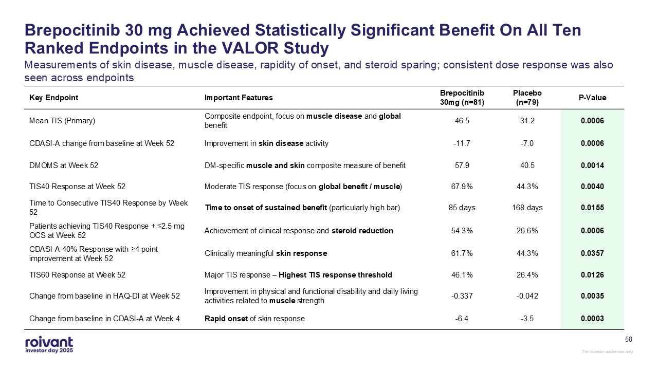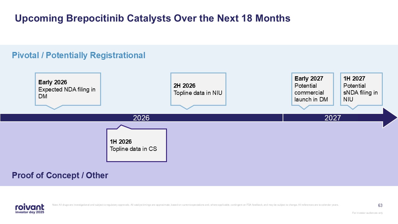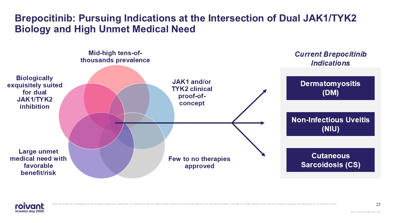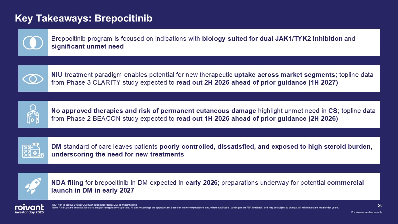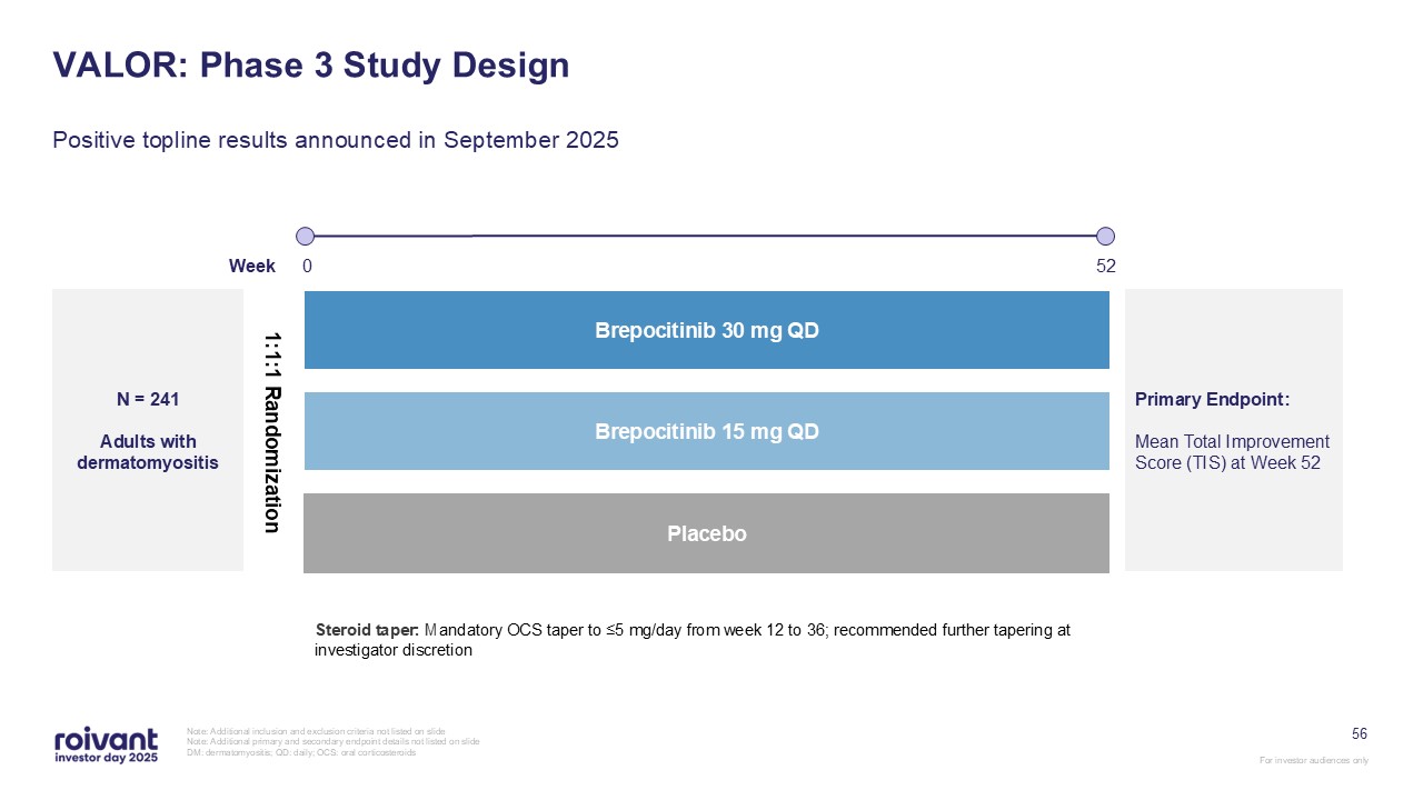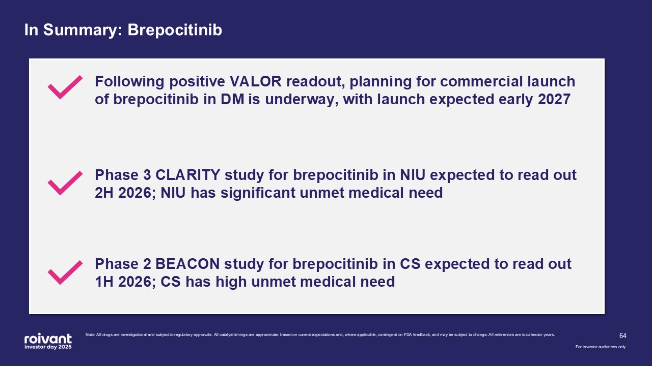 programs. We have an opportunity for three meaningful first-in-class commercial launches over the next three years,” said Matt Gline, CEO of Roivant. “First among them is brepocitinib in DM, where the Phase 3 data generated earlier this year