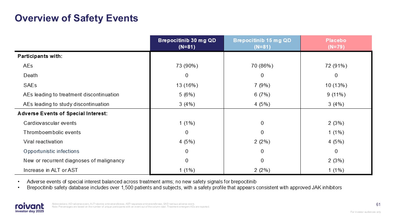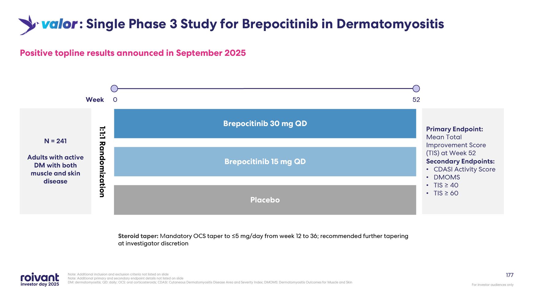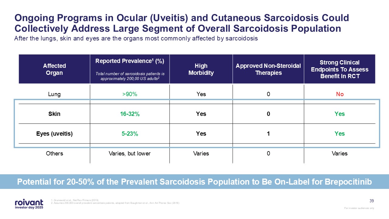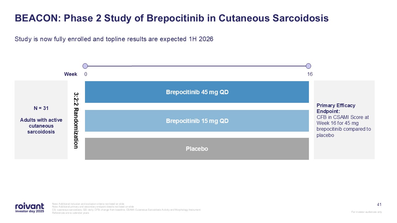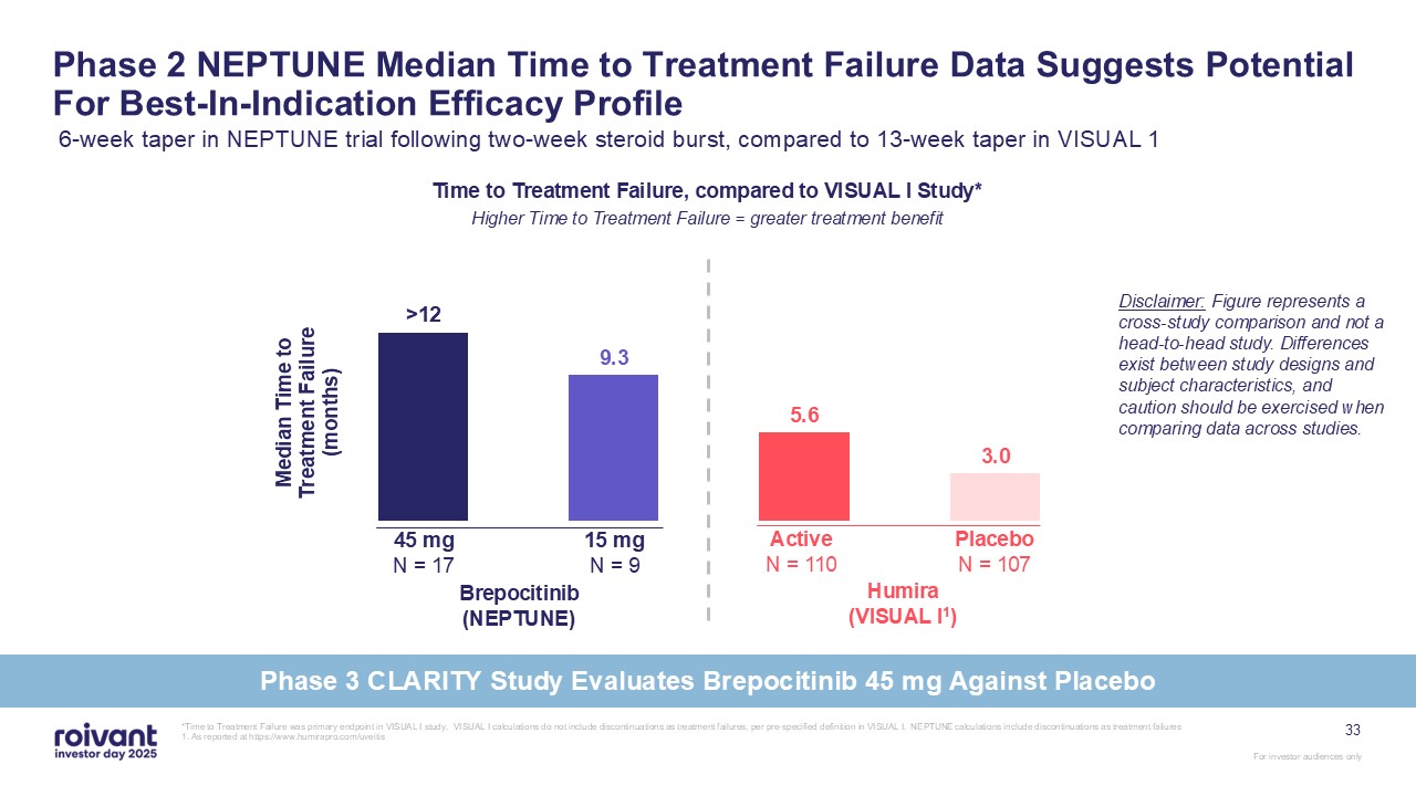 programs. We have an opportunity for three meaningful first-in-class commercial launches over the next three years,” said Matt Gline, CEO of Roivant. “First among them is brepocitinib in DM, where the Phase 3 data generated earlier this year