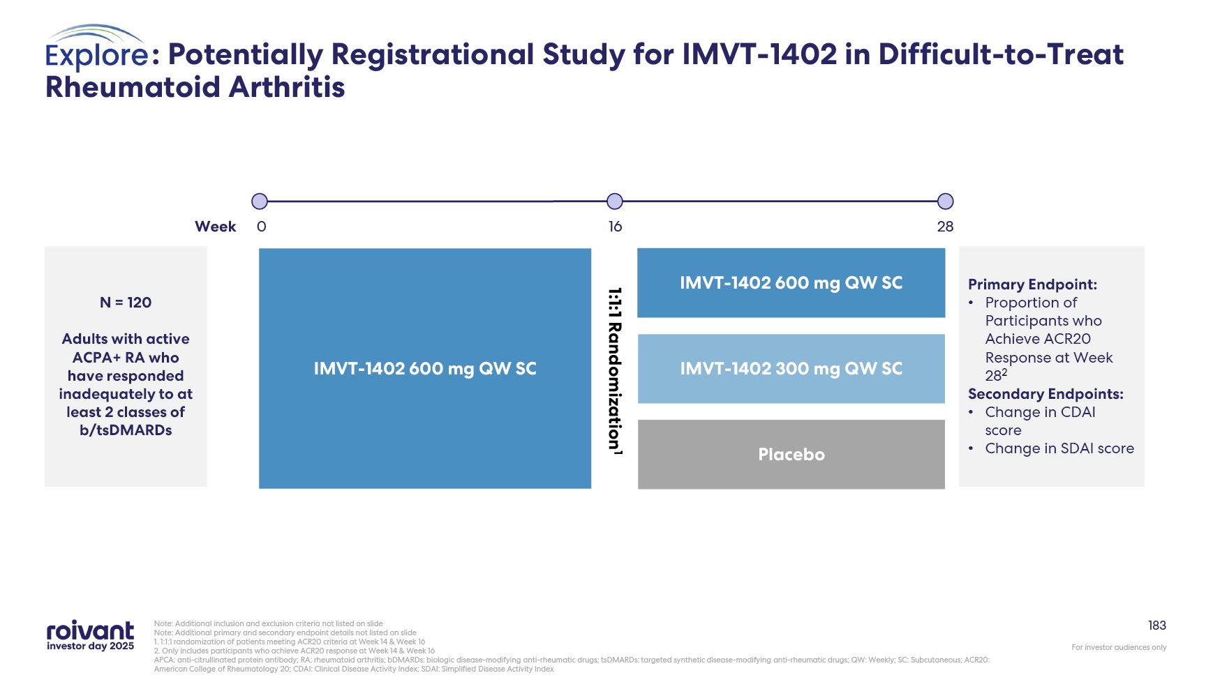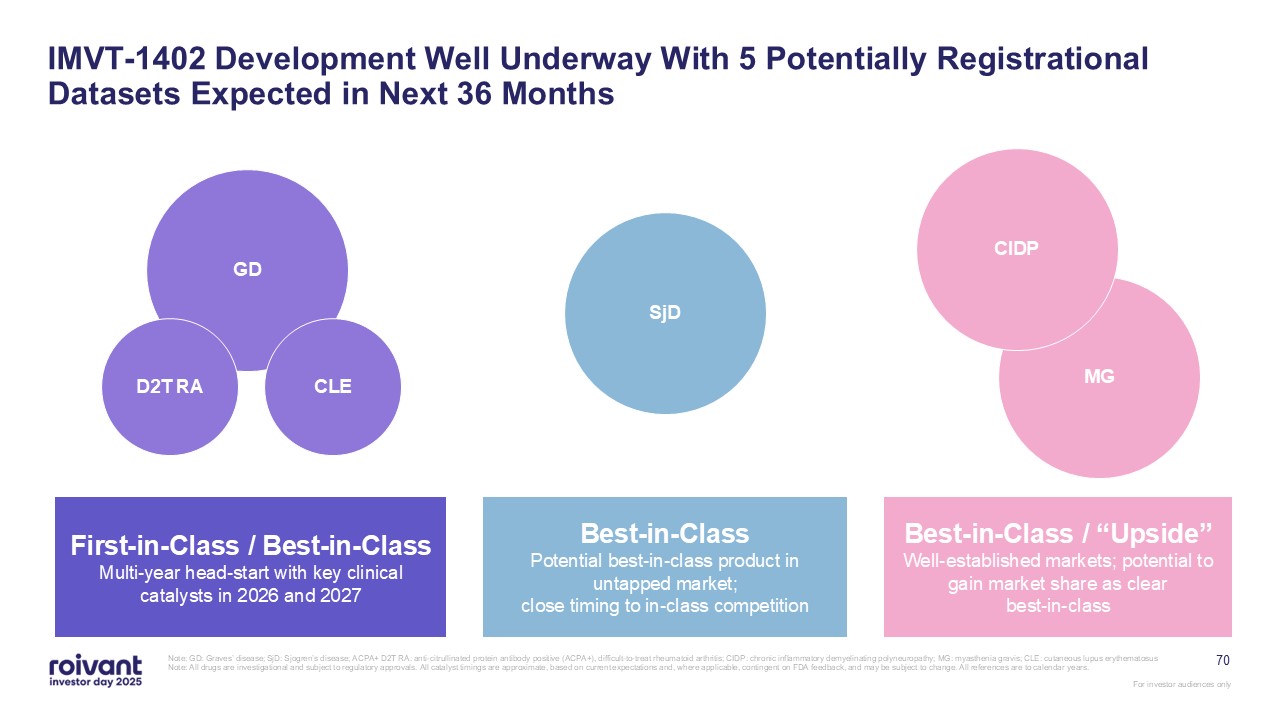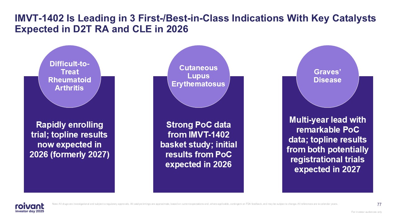 IMVT-1402 potentially registrational trial in difficult-to-treat rheumatoid arthritis (D2T RA) topline data now expected in calendar year 2026