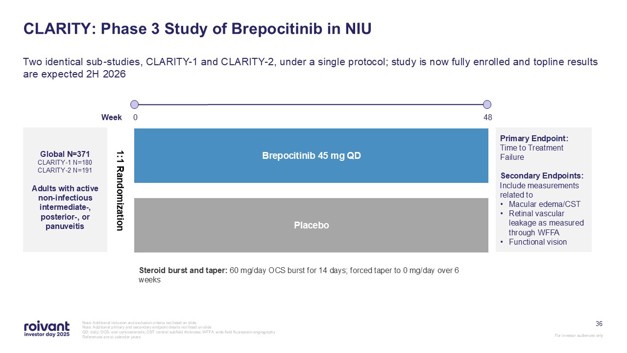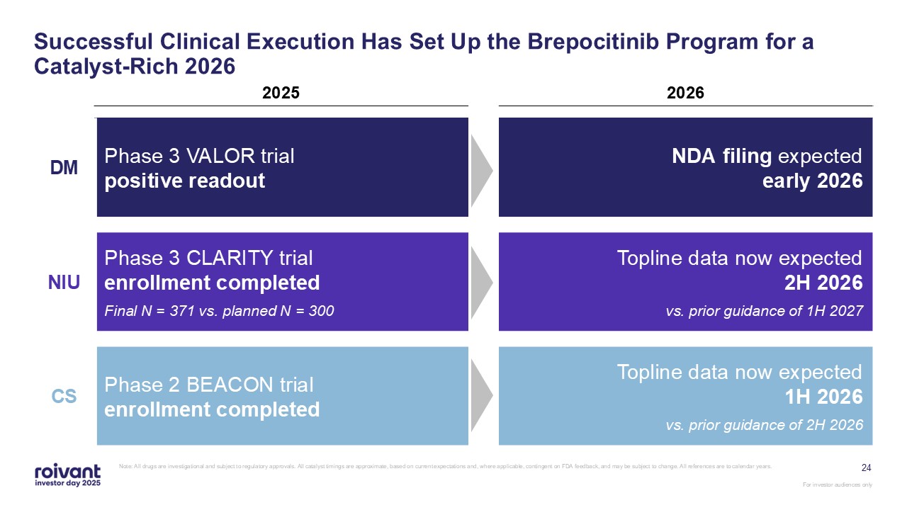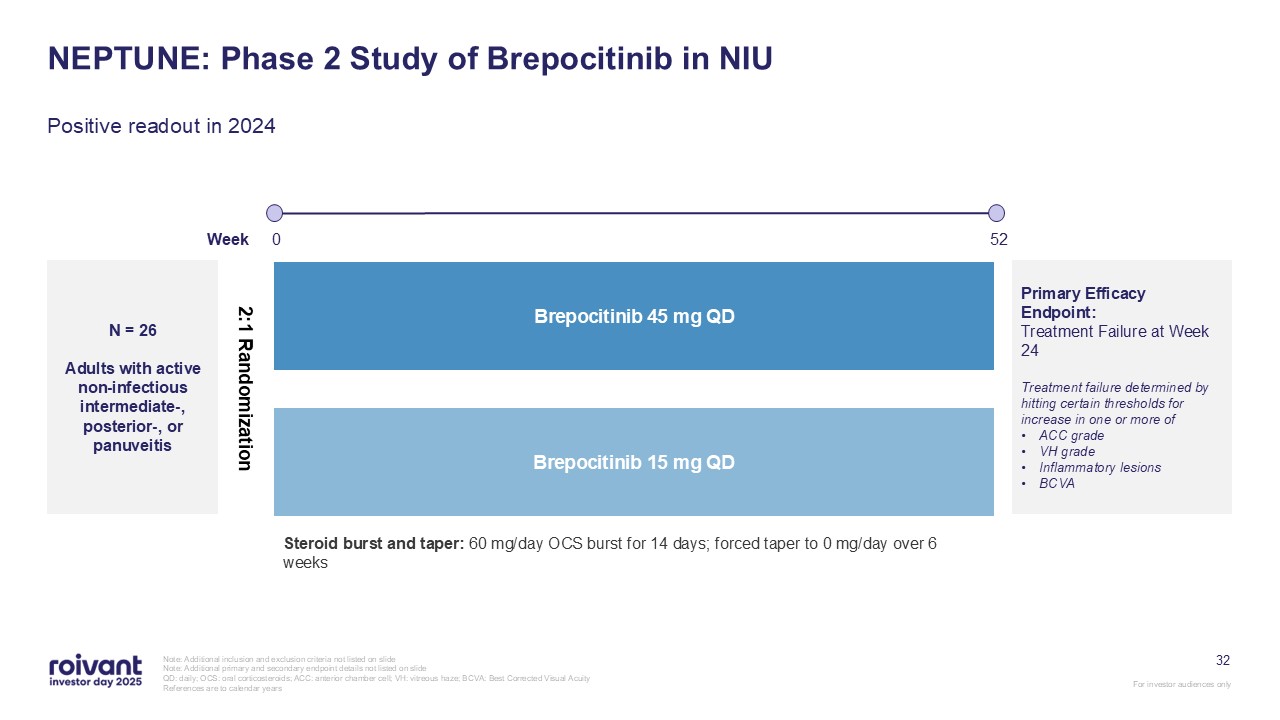Phase 3 trial for brepocitinib in NIU is fully enrolled ahead of schedule with topline data expected in the second half of calendar year 2026,