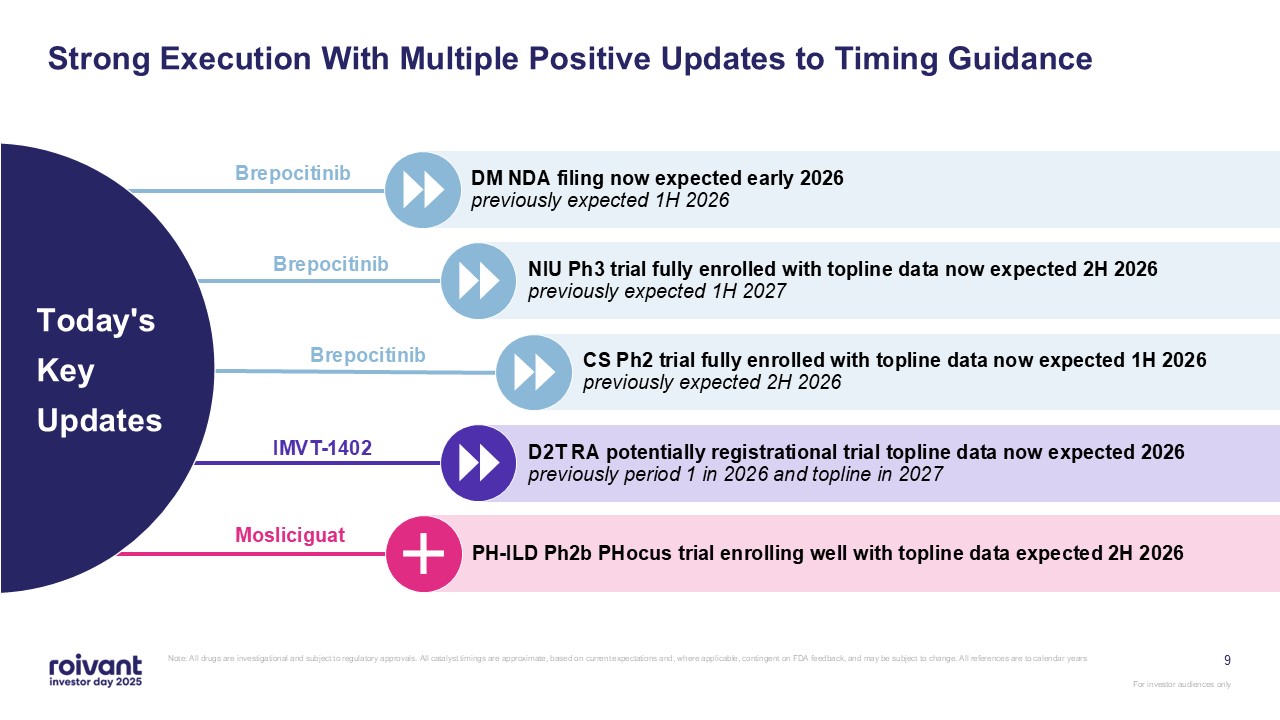 Highlighting clinical execution, Roivant announces positive updates to timing guidance across four key programs: