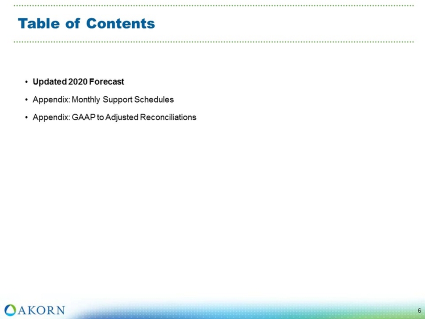 Table of Contents • Updated 2020 Forecast • Appendix: Monthly Support Schedules • Appendix: GAAP to Adjusted Reconciliations 6