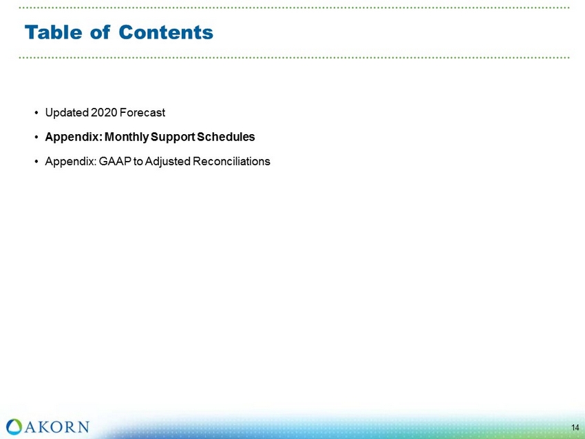 Table of Contents • Updated 2020 Forecast • Appendix: Monthly Support Schedules • Appendix: GAAP to Adjusted Reconciliations 14