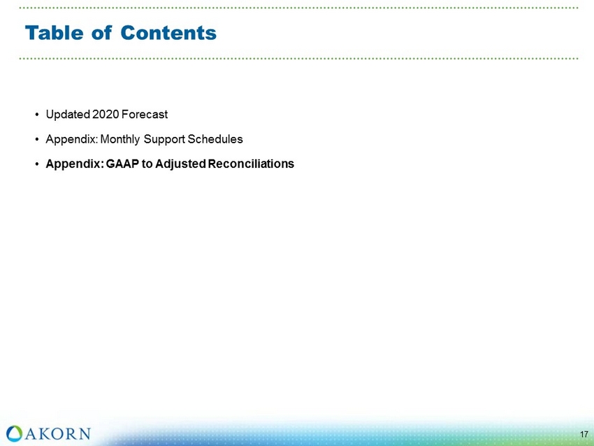 Table of Contents • Updated 2020 Forecast • Appendix: Monthly Support Schedules • Appendix: GAAP to Adjusted Reconciliations 17